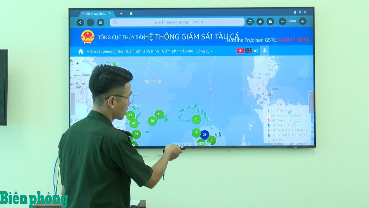Cán bộ BĐBP tỉnh Đắk Lắk giám sát hành trình các tàu cá có nguy cơ vi phạm vùng biển nước ngoài. Ảnh: Xuân Điền