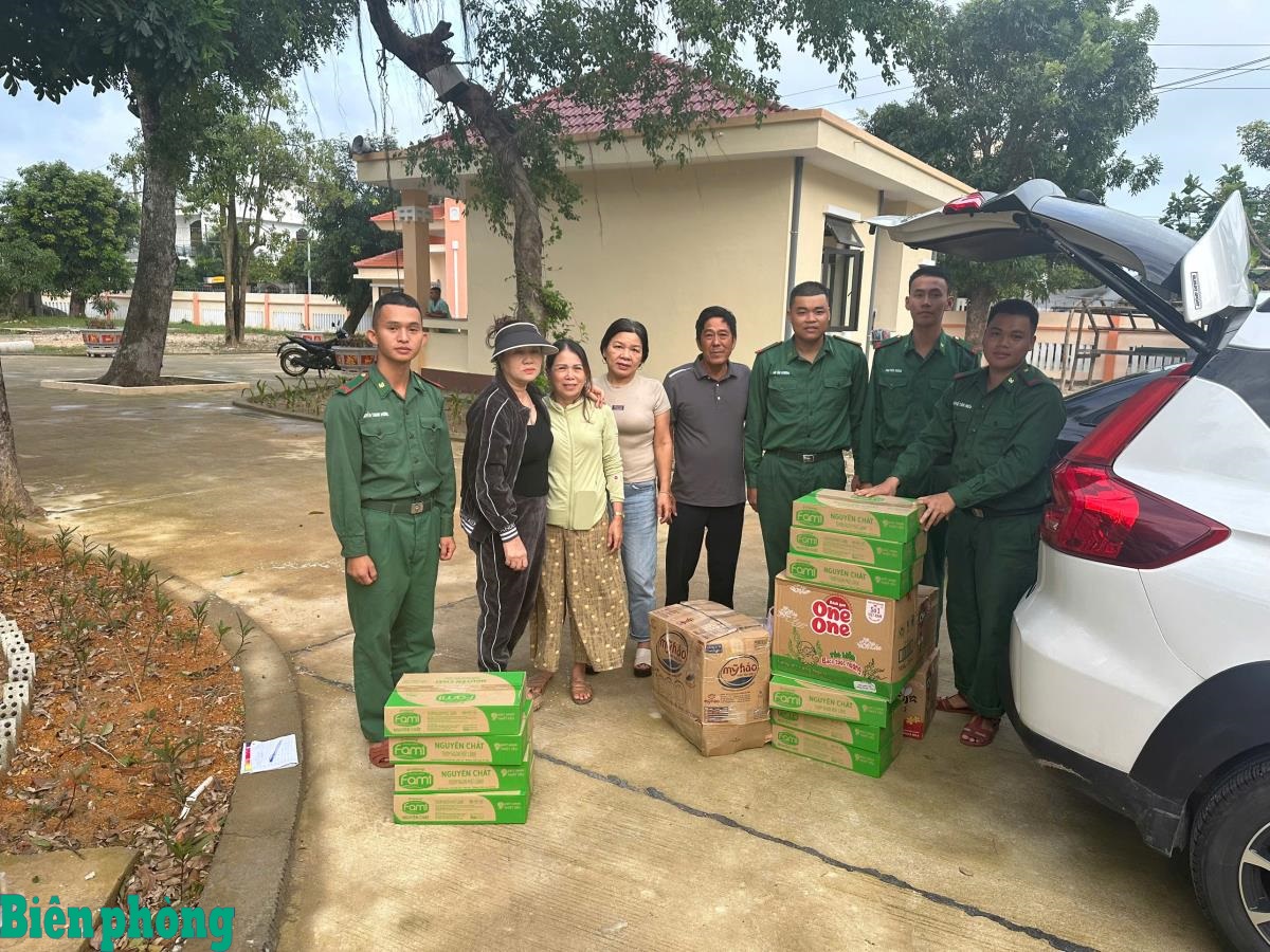 Đồn Biên phòng Phổ Quang ủng hộ nhu yếu phẩm cho đồng bào vùng lũ. Ảnh: Văn Tánh