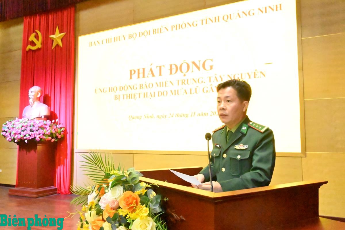 Thượng tá Lê Quang Chiểu, Phó Chính ủy BĐBP tỉnh Quảng Ninh phát động ủng hộ đồng bào miền Trung, Tây Nguyên bị thiệt hại do mưa lũ. Ảnh: Xuân Hùng