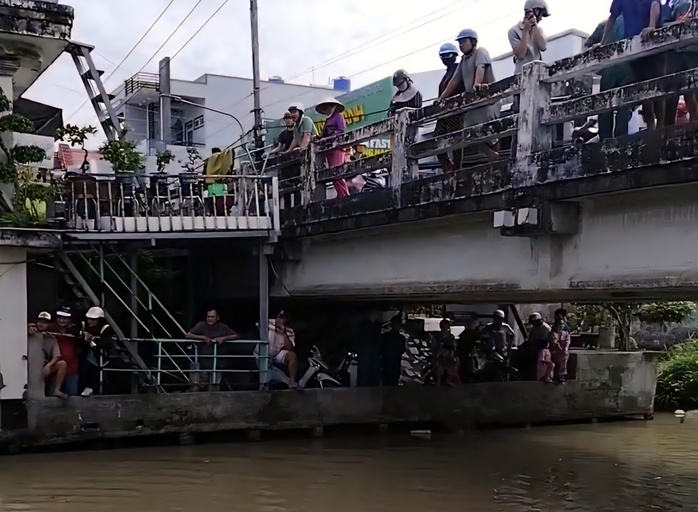 Nhiều người dân theo dõi tông tích bé trai 4 tháng tuổi nghi bị rơi xuống sông mất tích