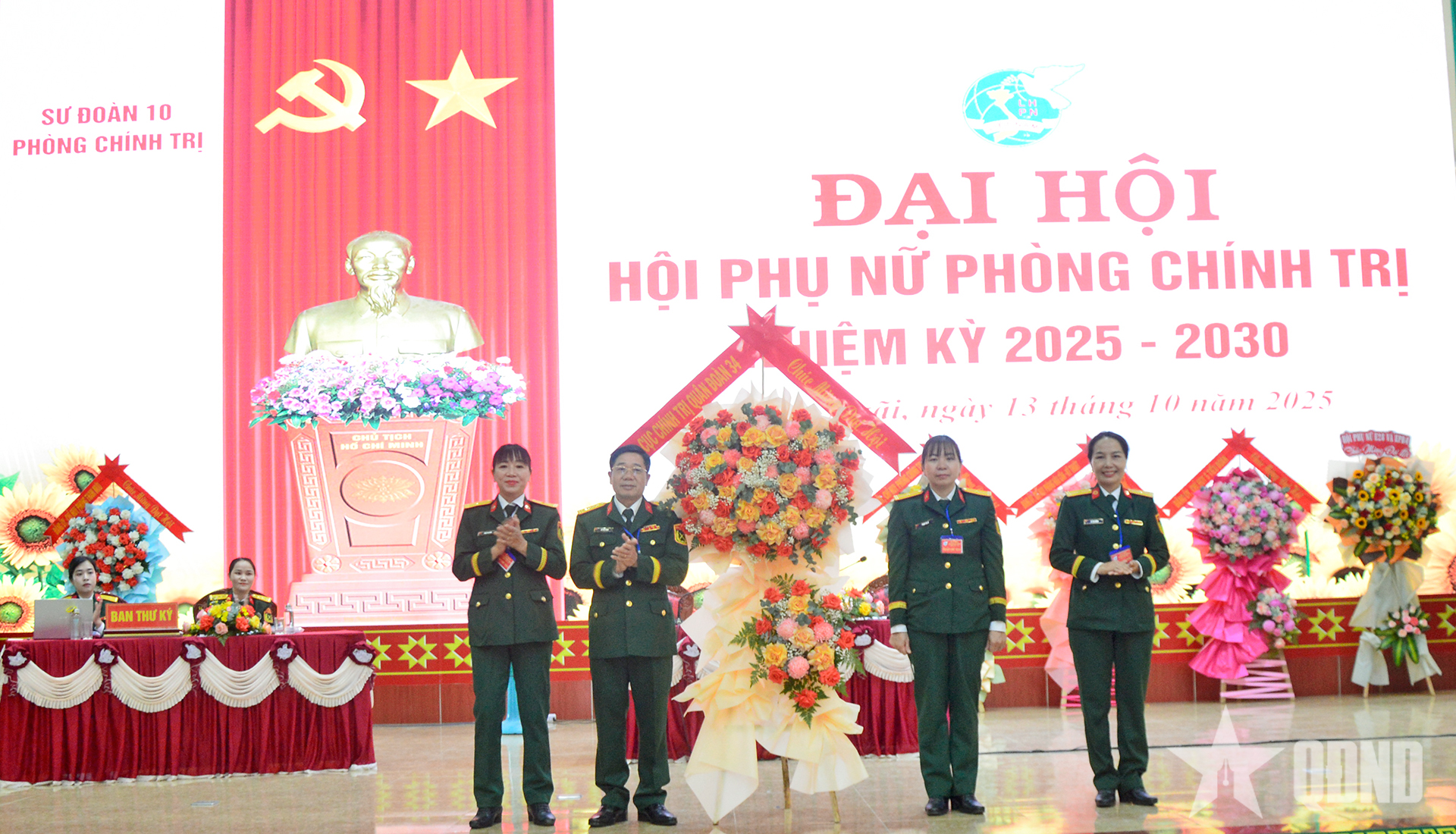 Ban Chấp hành Hội Phụ nữ Phòng Chính trị Sư đoàn 10 nhiệm kỳ 2025-2030 và Đoàn đại biểu dự Hội nghị Phụ nữ Quân đoàn 34 ra mắt đại hội.