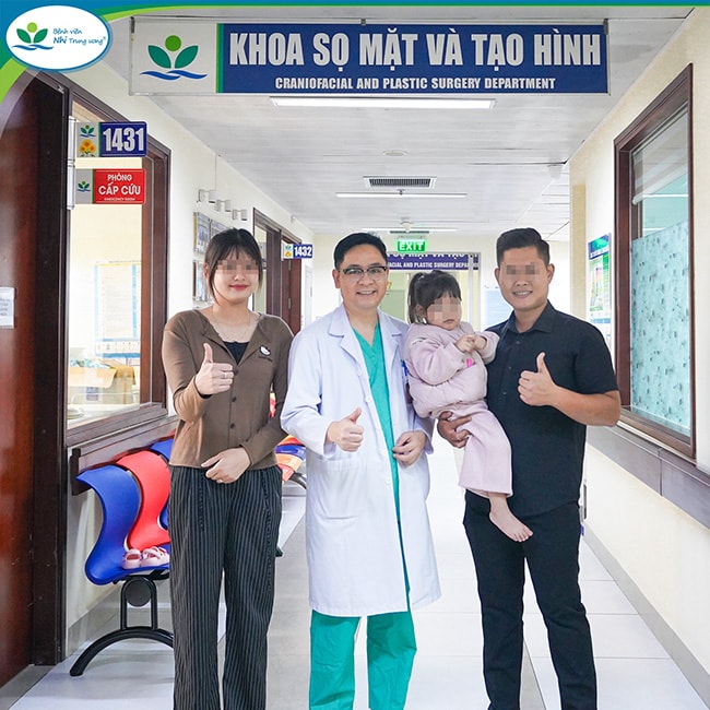 Nụ cười rạng rỡ của gia đình bệnh nhi khi chứng kiến sự hồi phục của con. Ảnh: BVCC
