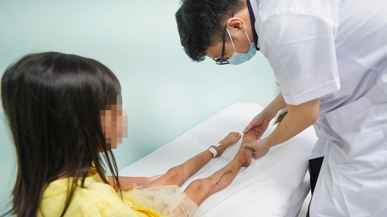 Sau mổ, trẻ hồi phục tốt, vạt da hồng ấm, xương ghép định hình đúng giải phẫu, hai chi được tưới máu ổn định, vận động cảm giác các ngón chân tốt. Điều đó cho thấy các cấu trúc quan trọng đã được bảo tồn thành công.