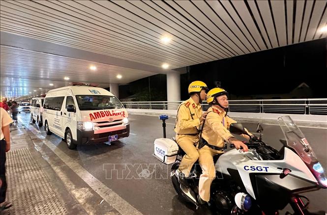 Lực lượng cảnh sát giao thông hộ tống quá trình vận chuyển trái tim về Bệnh viện Đại học Y dược TP Hồ Chí Minh một cách nhanh nhất. Ảnh: TTXVN phát