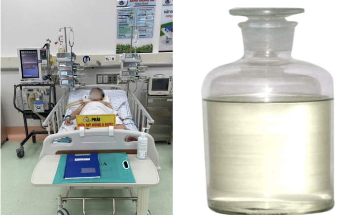Bác sĩ tìm ra nguyên nhân khiến trẻ hôn mê, trụy mạch là ngộ độc khí styrene từ chai hóa chất hàn nhựa để trong cốp xe. Trên nhãn chai ghi thành phần gồm nhựa polyesster lỏng không no 52-61%, styrene monomer 39-48%.