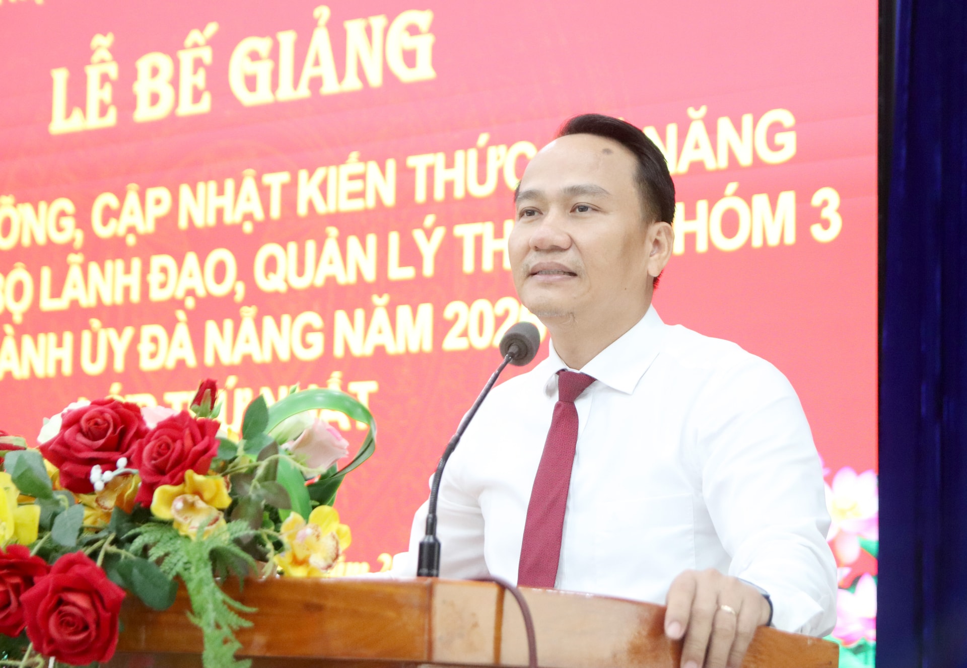 Phó Bí thư Thường trực Thành ủy Nguyễn Đình Vĩnh phát biểu tại lễ bế giảng. Ảnh: TRỌNG HUY