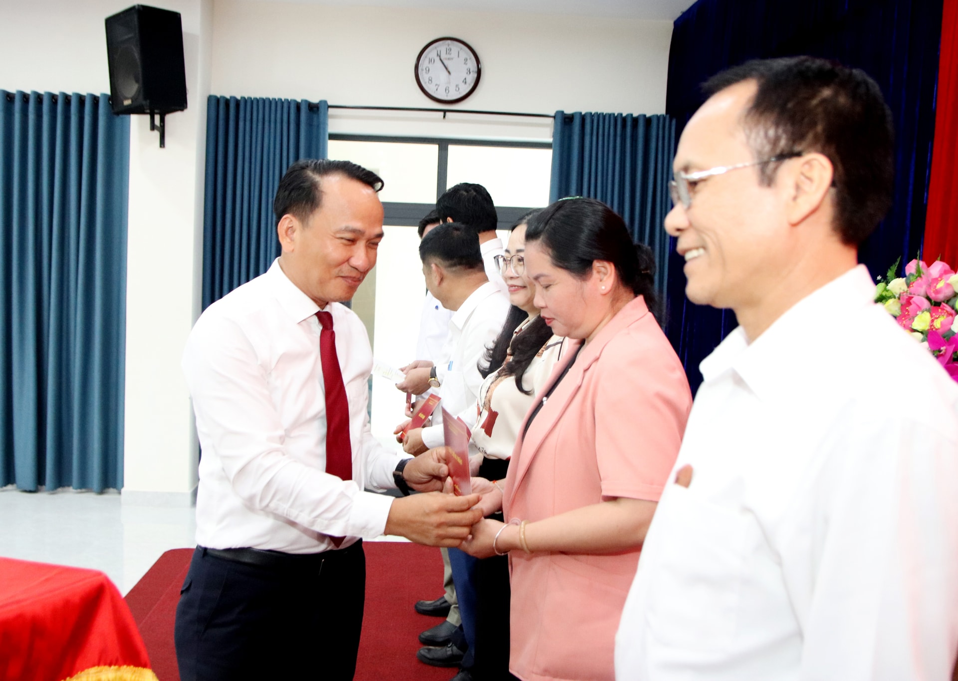 Phó Bí thư Thường trực Thành ủy Nguyễn Đình Vĩnh trao chứng nhận cho các học viên. Ảnh: TRỌNG HUY