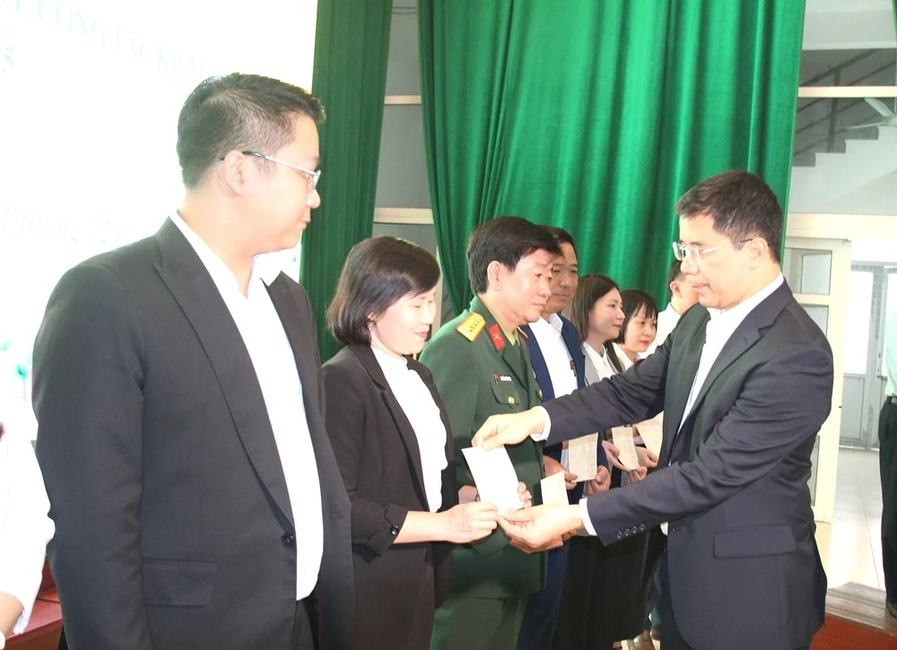 Đồng chí Nguyễn Hồng Phong, Phó Bí thư Thường trực Tỉnh ủy Thanh Hóa trao Giấy chứng nhận hoàn thành lớp bồi dưỡng cho các học viên.