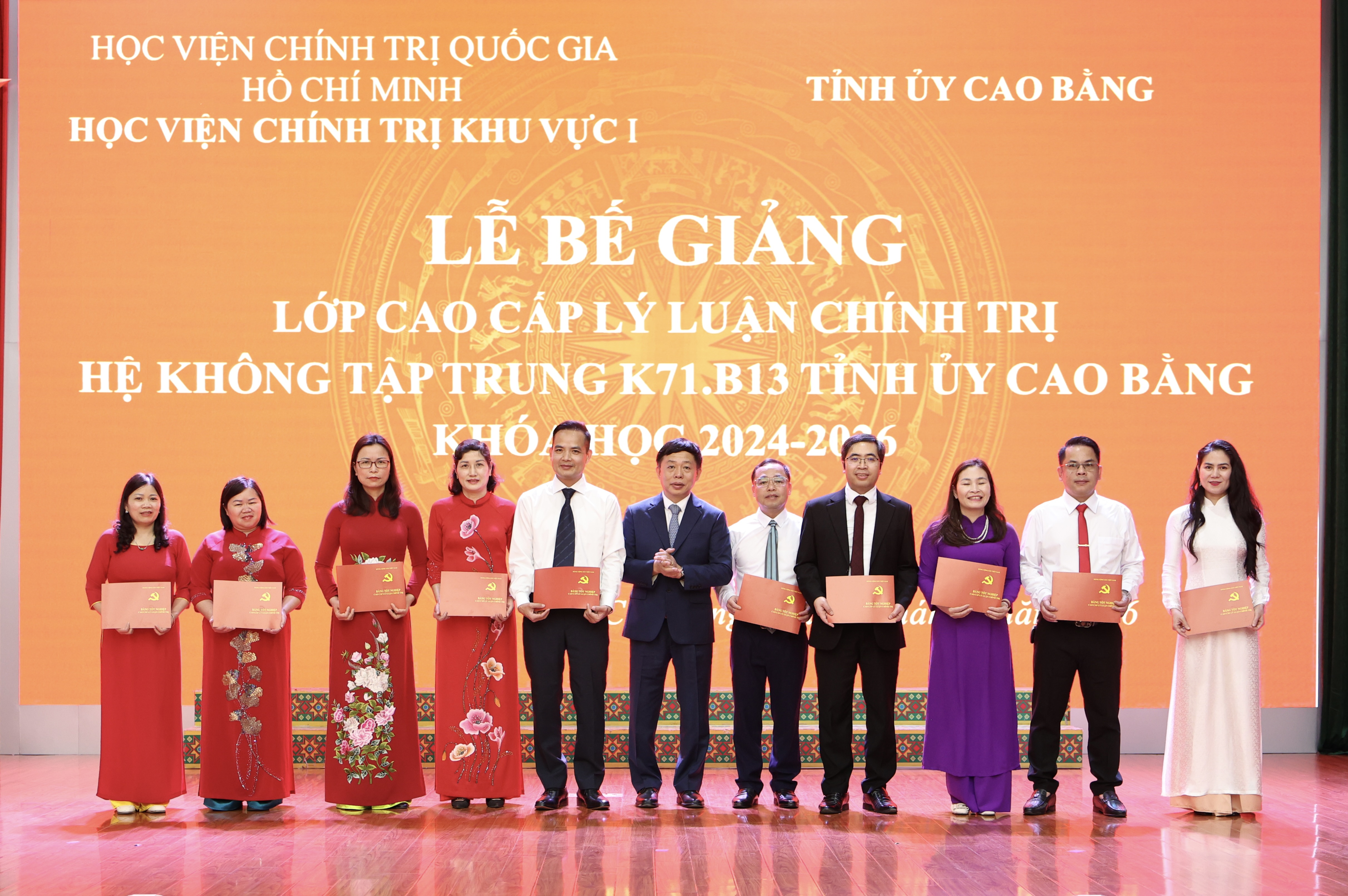Lớp CCLLCT hệ không tập trung K71.B13 Tỉnh ủy Cao Bằng khóa học 2024 - 2026 có 41 học viên (HV) là lãnh đạo các phòng, ban và tương đương, cán bộ được quy hoạch vào các chức danh lãnh đạo, quản lý ở các địa phương, cơ quan, đơn vị trên địa bàn tỉnh.