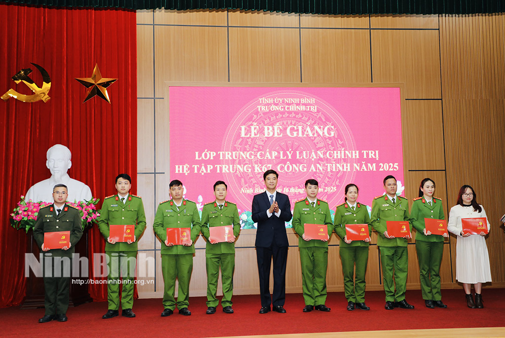 Tại lễ bế giảng, lãnh đạo Trường Chính trị tỉnh đã trao Bằng Tốt nghiệp cho các học viên; trao Giấy khen của Trường Chính trị tỉnh cho 5 học viên đạt thành tích xuất sắc trong học tập và rèn luyện.
