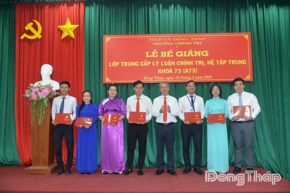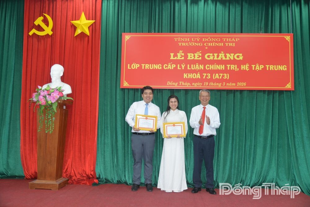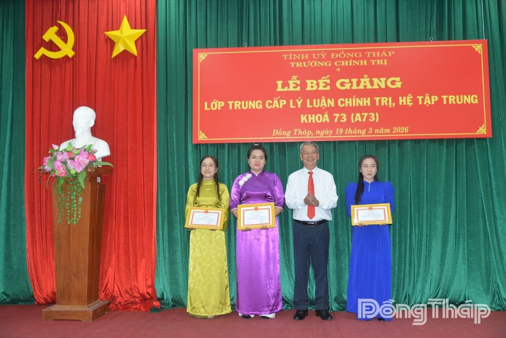 Tại lễ bế giảng, lãnh đạo Trường Chính trị tỉnh trao bằng tốt nghiệp cho các học viên; tặng Giấy khen cho 2 học viên đạt thành tích tốt trong học tập và 3 học viên có thành tích tốt trong rèn luyện và hoạt động phong trào.