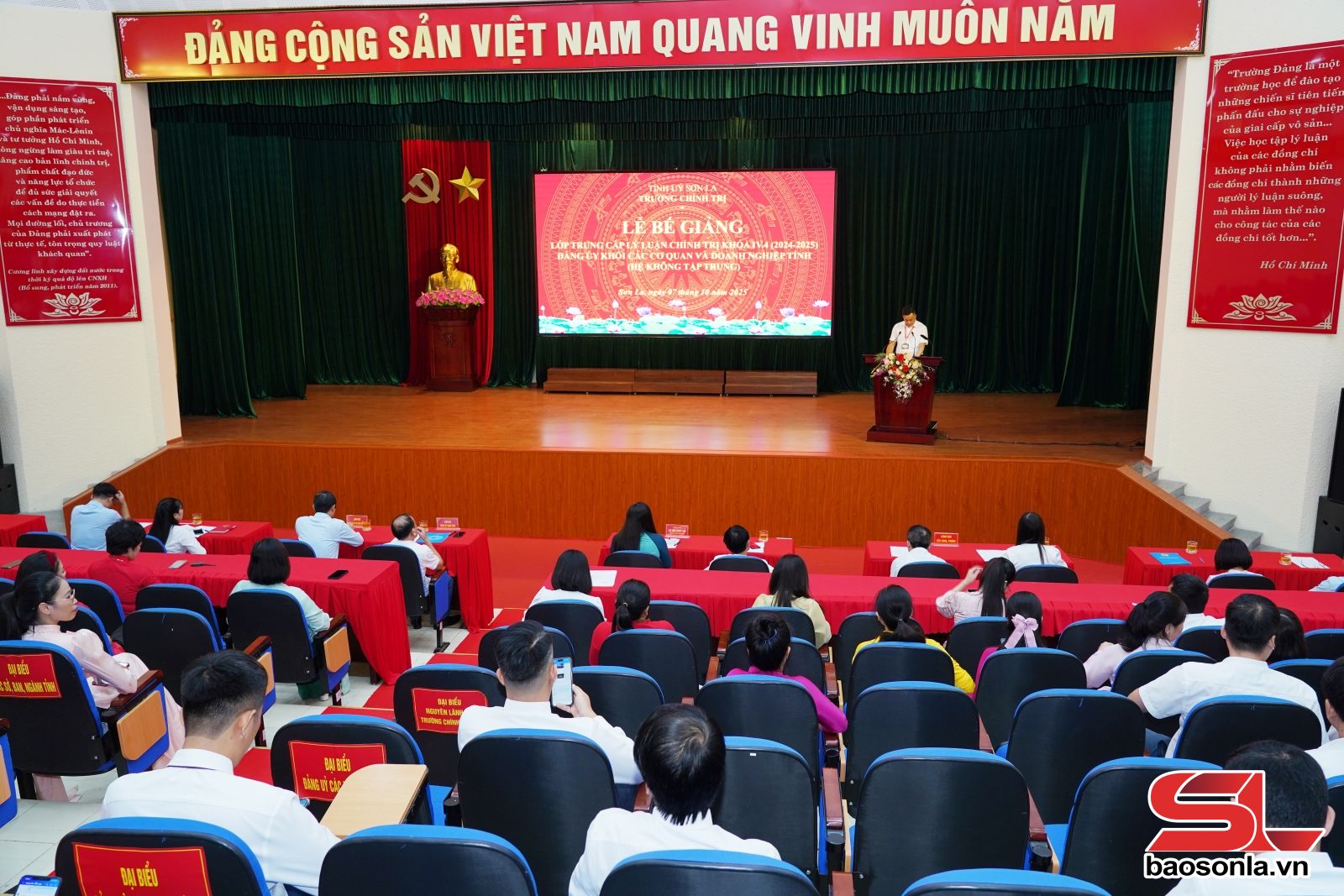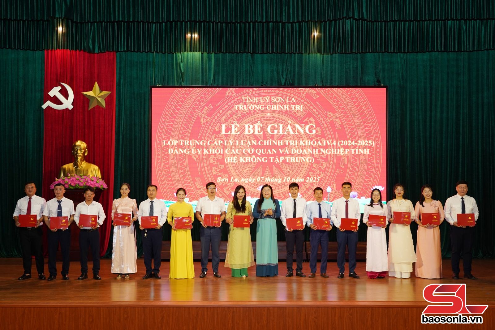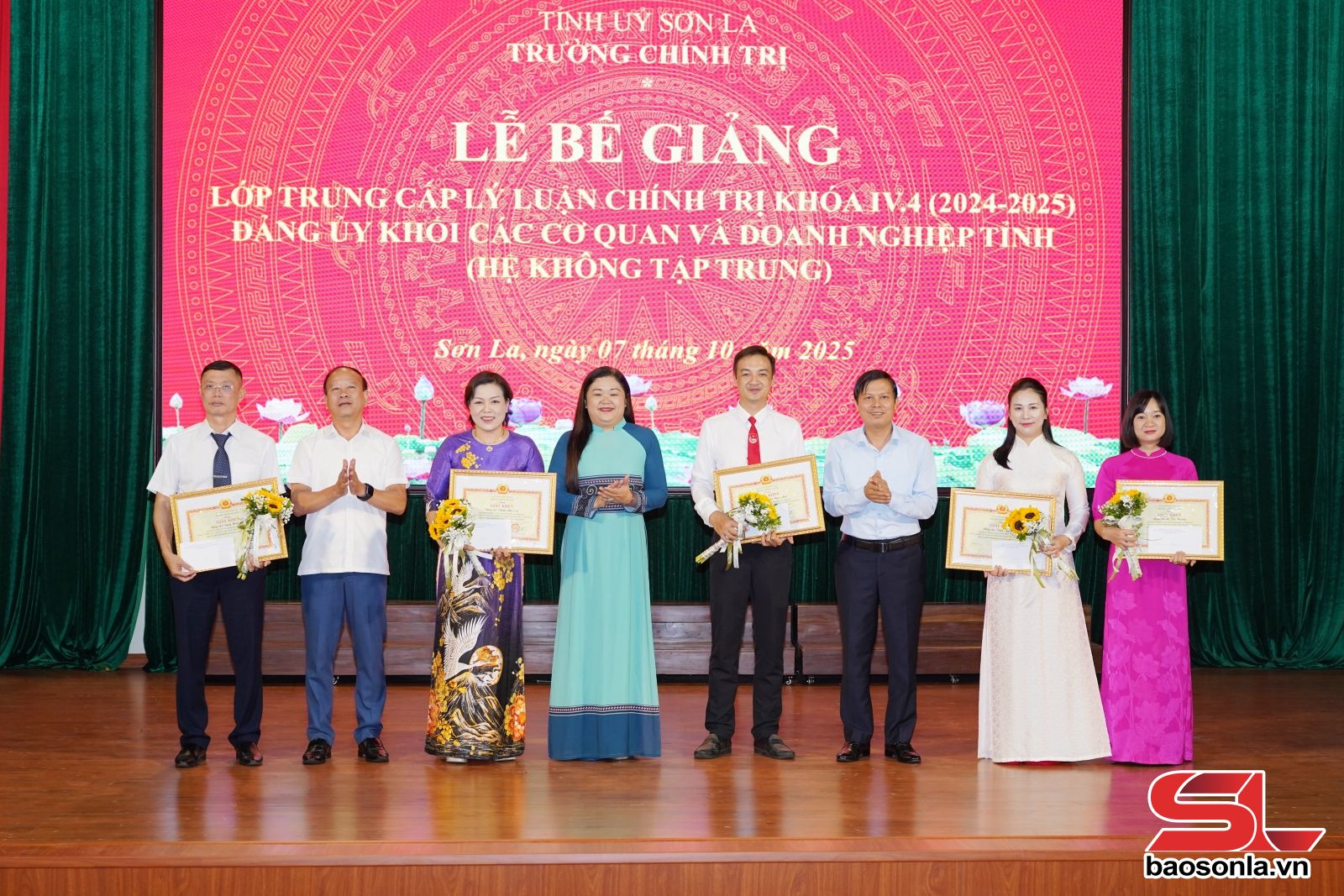 Dự bế giảng có đại diện Ban Giám hiệu Trường Chính tỉnh; Đảng ủy Các cơ quan Đảng tỉnh, Đảng ủy UBND tỉnh cùng các học viên lớp Trung cấp lý luận chính trị khóa IV.4. Lớp Trung cấp lý luận chính trị khóa IV.4 (2024 - 2025) hệ không tập trung có 65 học viên; trong đó, tỷ lệ nữ chiếm 52,3%, 100% học viên có trình độ văn hóa đạt 12/12, trình độ thạc sĩ chiếm 41,5%.Sau hơn 1 năm học tập, các học viên đã hoàn thành 1.056 tiết lý thuyết với 5 khối kiến thức, gồm: Chủ nghĩa Mác - Lênin, tư tưởng Hồ Chí Minh; lịch sử Đảng; xây dựng Đảng; quản lý hành chính; thực tiễn địa phương cùng 160 tiết nghiên cứu thực tế và thi. Nghiên cứu thực tế 5 ngày tại các khu vực Yên Châu và Vân Hồ, tập trung nghiên cứu về mô hình chính quyền 2 cấp, phát triển kinh tế - xã hội, du lịch, nông nghiệp công nghệ cao.