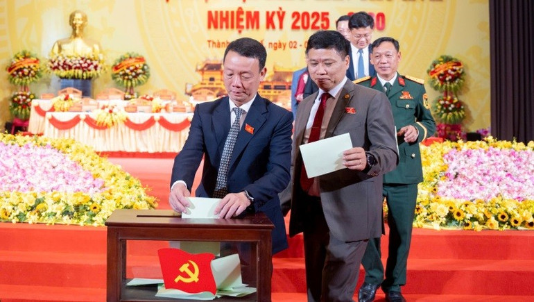 Các đại biểu tiến hành bầu Đoàn đại biểu tham dự Đại hội Đảng toàn quốc lần thứ XIV.