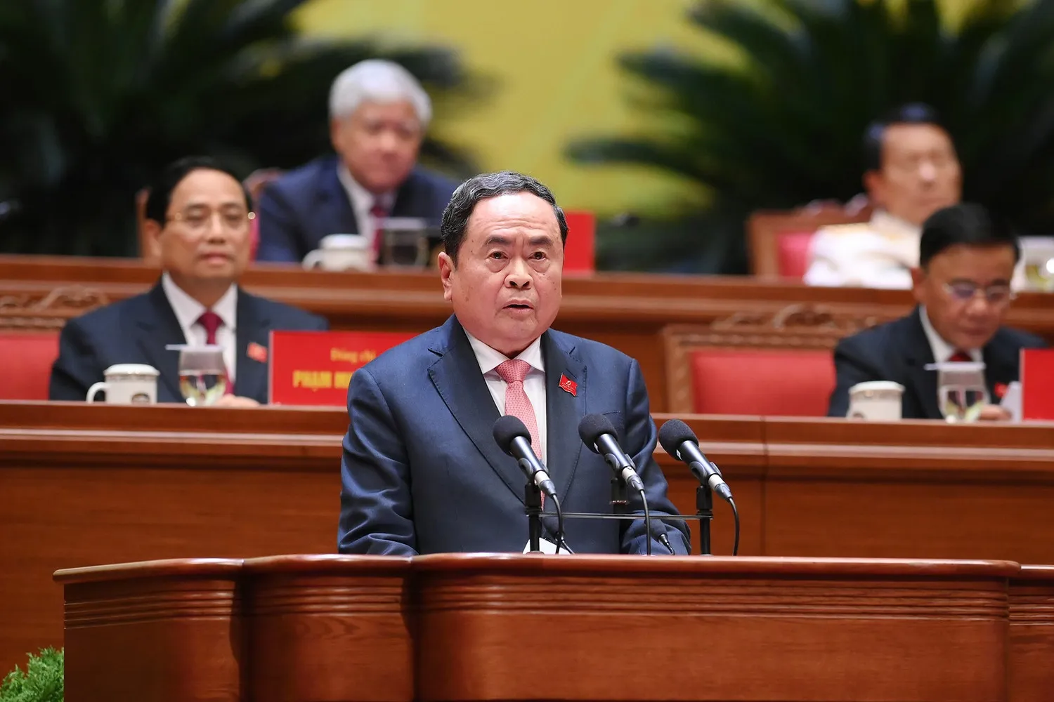 Đồng chí Trần Thanh Mẫn, Ủy viên Bộ Chính trị, Chủ tịch Quốc hội thông báo kết quả Hội nghị lần thứ nhất Ban Chấp hành Trung ương Đảng khóa XIV. Ảnh: ĐH