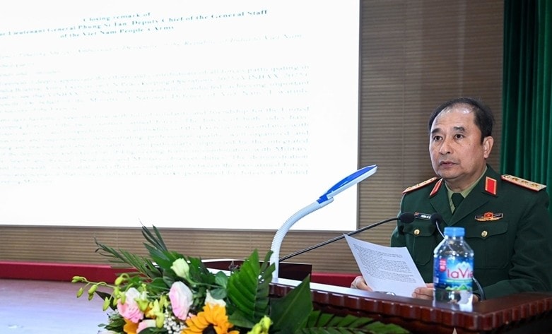 Thượng tướng Phùng Sĩ Tấn, Phó Tổng Tham mưu trưởng Quân đội nhân dân Việt Nam, Tổ phó Tổ công tác liên ngành, Phó Trưởng ban chỉ đạo Bộ Quốc phòng về tham gia hoạt động gìn giữ hòa bình Liên hợp quốc, chủ trì lễ bế mạc.