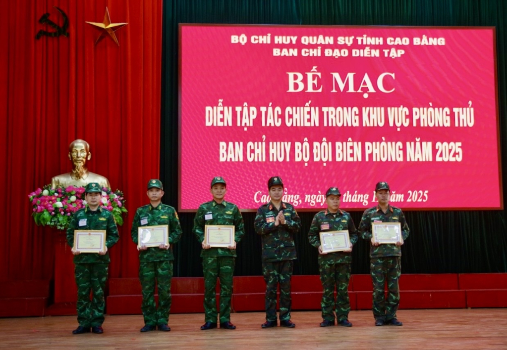 Bộ Chỉ huy Quân sự tỉnh tặng giấy khen các tập thể có thành tích xuất sắc trong thực hiện nhiệm vụ diễn tập điểm Ban Chỉ huy Bộ đội biên phòng năm 2025.