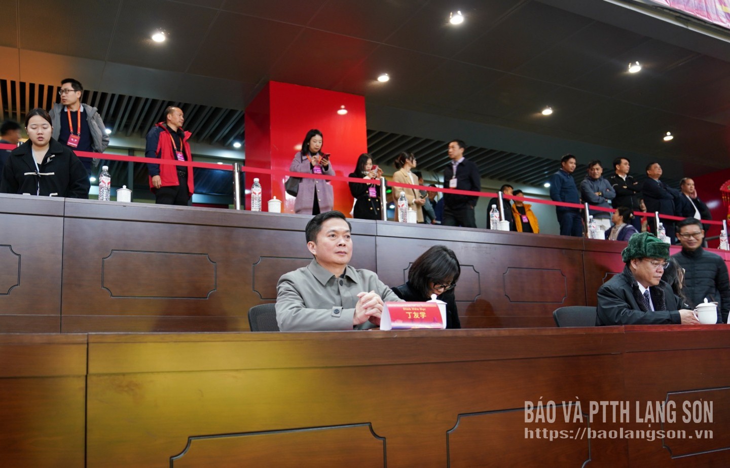 Đồng chí Đinh Hữu Học, Ủy viên Ban Thường vụ Tỉnh ủy, Phó Chủ tịch Thường trực UBND tỉnh Lạng Sơn theo dõi trận chung kết