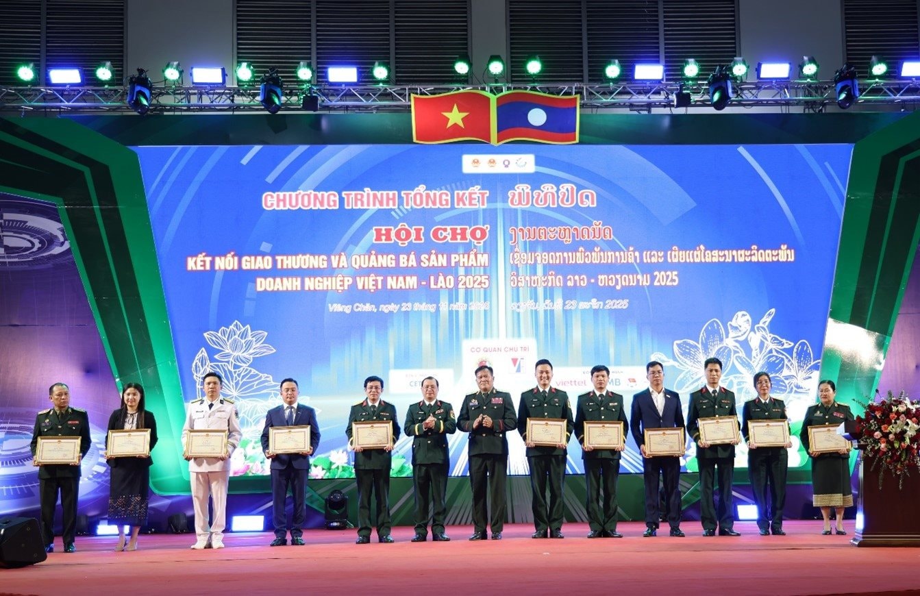 Tại lễ bế mạc, Ban Tổ chức đã trao Bằng khen của Bộ trưởng Bộ Quốc phòng Việt Nam cho 20 tập thể và 10 cá nhân có thành tích xuất sắc trong tổ chức và tham gia Hội chợ kết nối giao thương và quảng bá sản phẩm doanh nghiệp Việt Nam - Lào năm 2025.