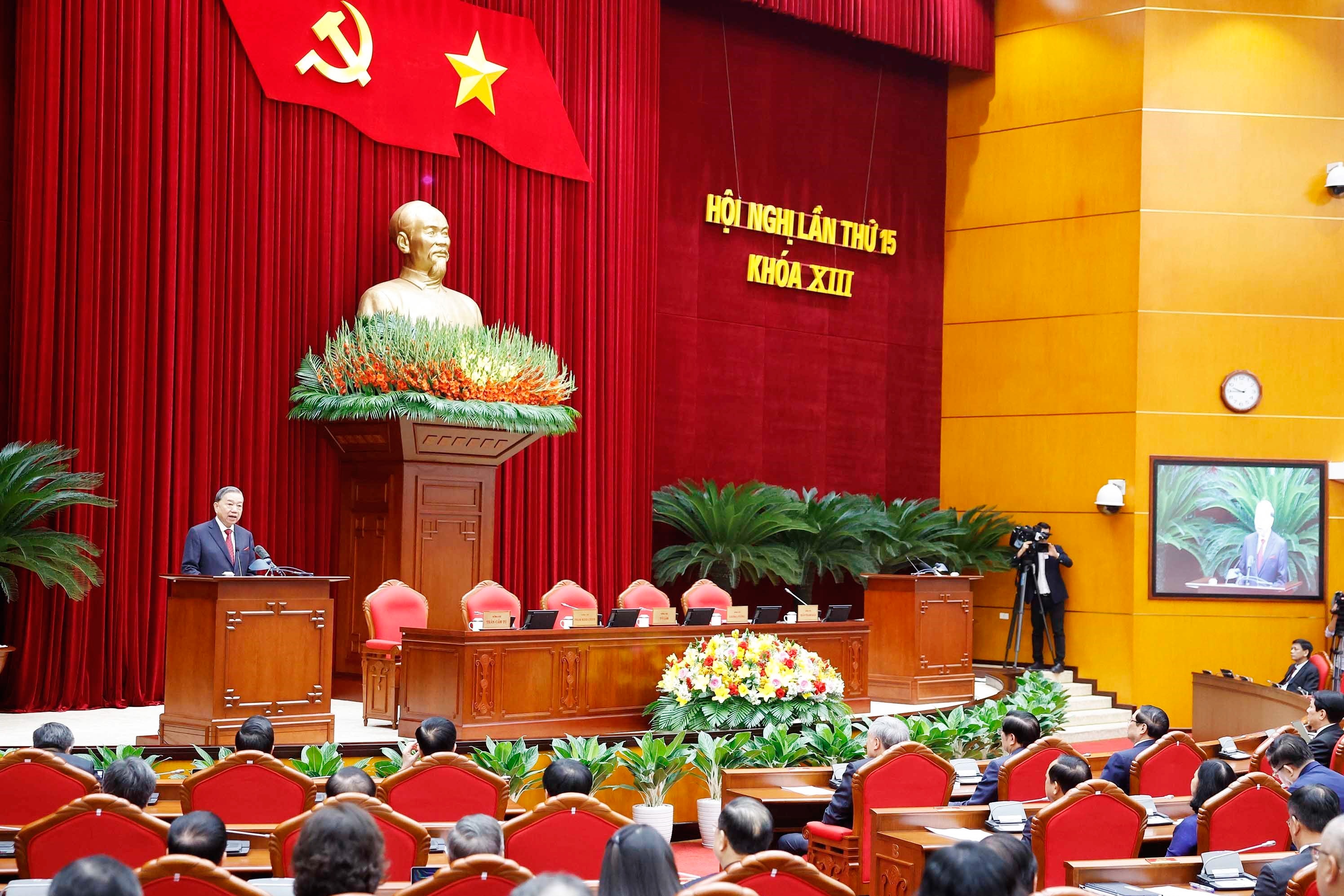 Tổng Bí thư Tô Lâm phát biểu bế mạc Hội nghị lần thứ 15 Ban Chấp hành Trung ương khóa XIII. Ảnh: Thống Nhất - TTXVN