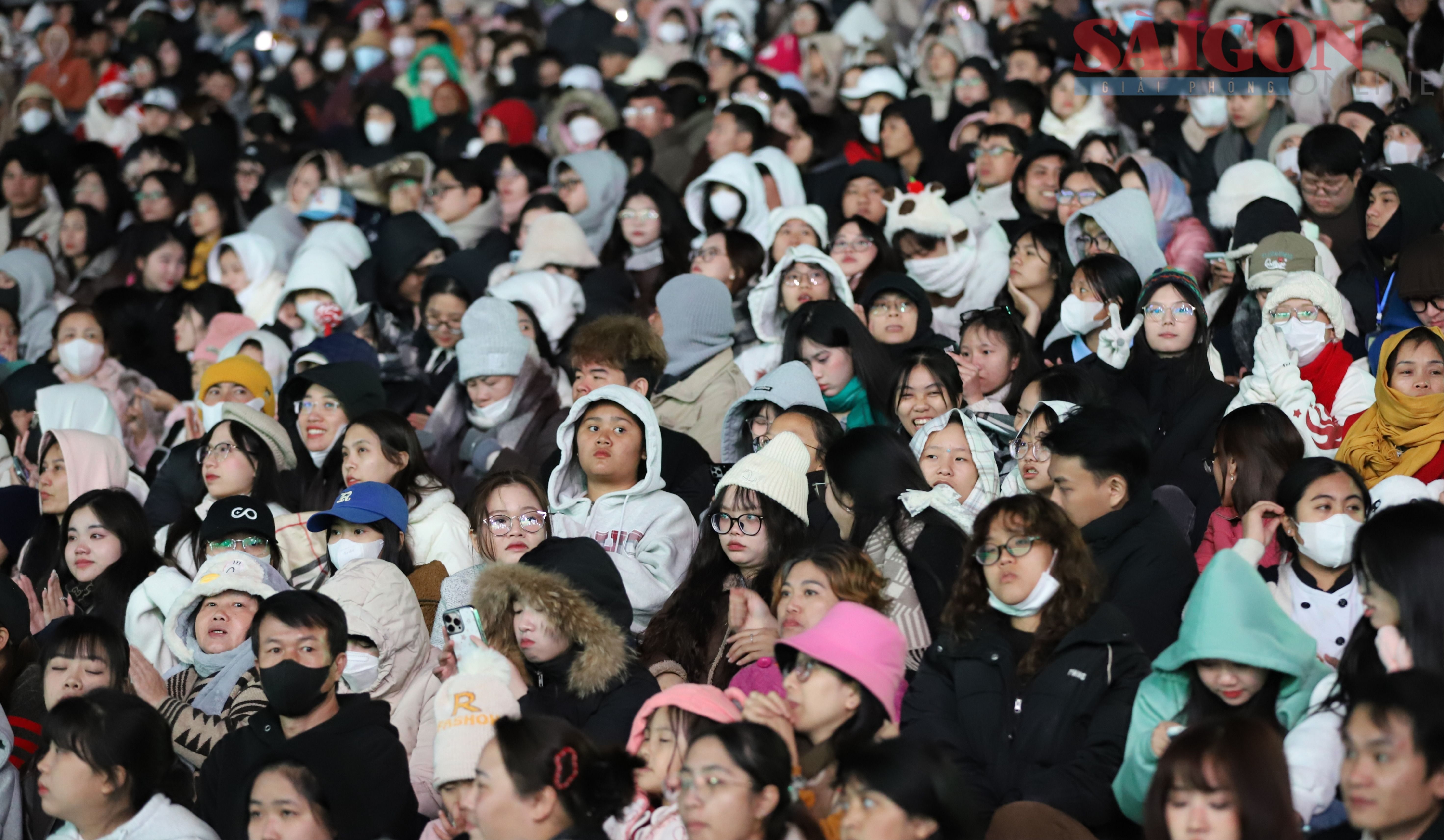 Dù nhiệt độ ngoài trời khá thấp nhưng vẫn rất đông khán giả theo dõi đêm bế mạc