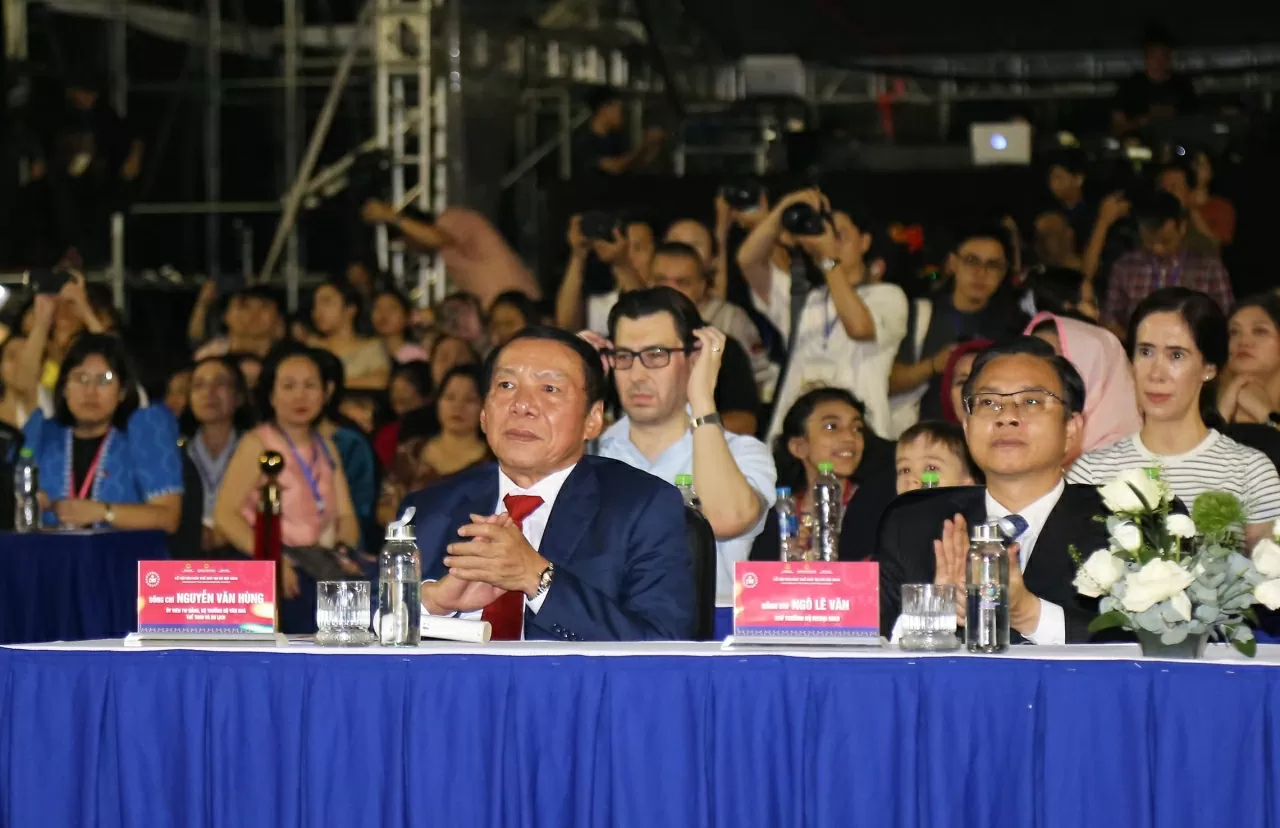 Ủy viên Trung ương Đảng, Bộ trưởng Bộ Văn hóa, Thể thao và Du lịch Nguyễn Văn Hùng và Thứ trưởng Ngoại giao Ngô Lê Văn tham dự lễ bế mạc. (Ảnh: Thành Long)