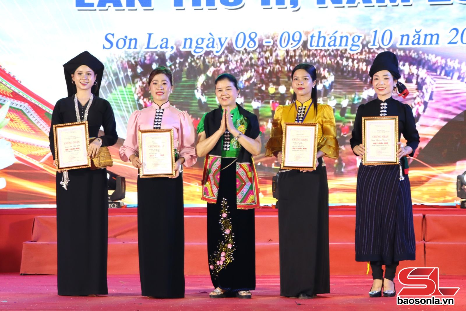 Tại lễ bế mạc, Ban Tổ chức đã trao 3 giải nhất từng nội dung thi cho 3 đội đến từ phường Tô Hiệu, Yên Châu và Sông Mã; trao 6 nhì; 9 giải ba và 21 giải khuyến khích cho các đội thi. Trao giải nhất toàn đoàn cho đoàn nghệ thuật quần chúng cho phường Tô Hiệu; 2 giải nhì toàn đoàn cho đoàn nghệ thuật quần chúng phường Chiềng Cơi, xã Yên Châu và trao 3 giải ba, 7 giải khuyến khích toàn đoàn cho các đoàn nghệ thuật.