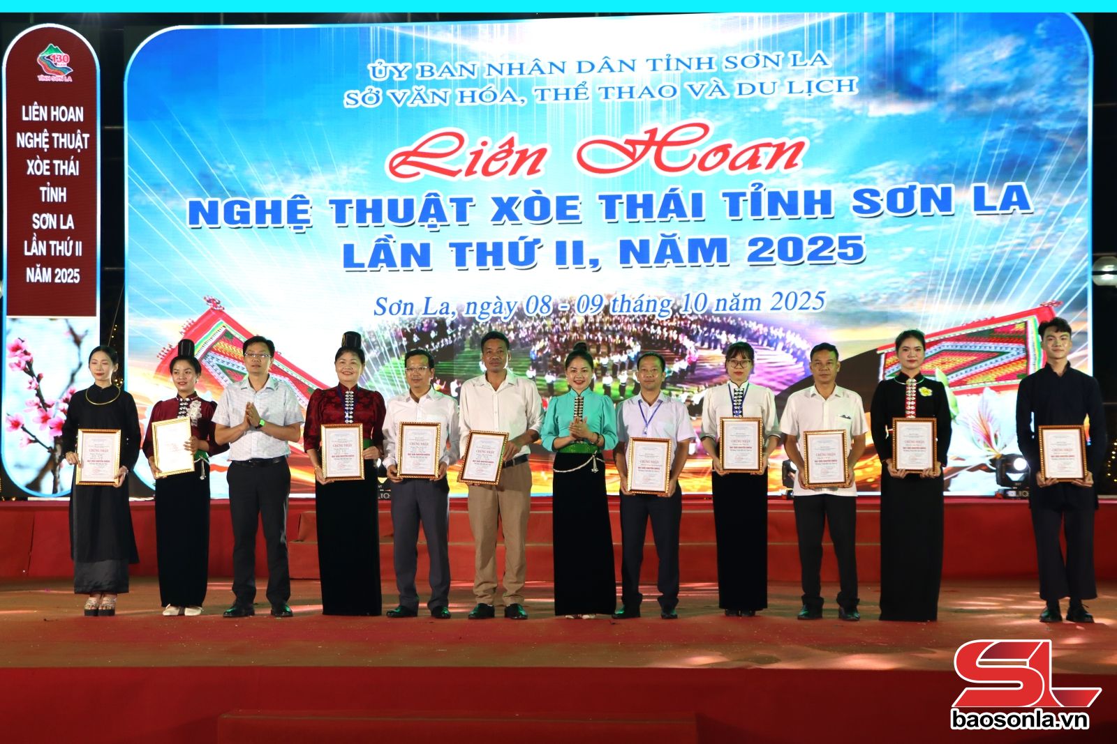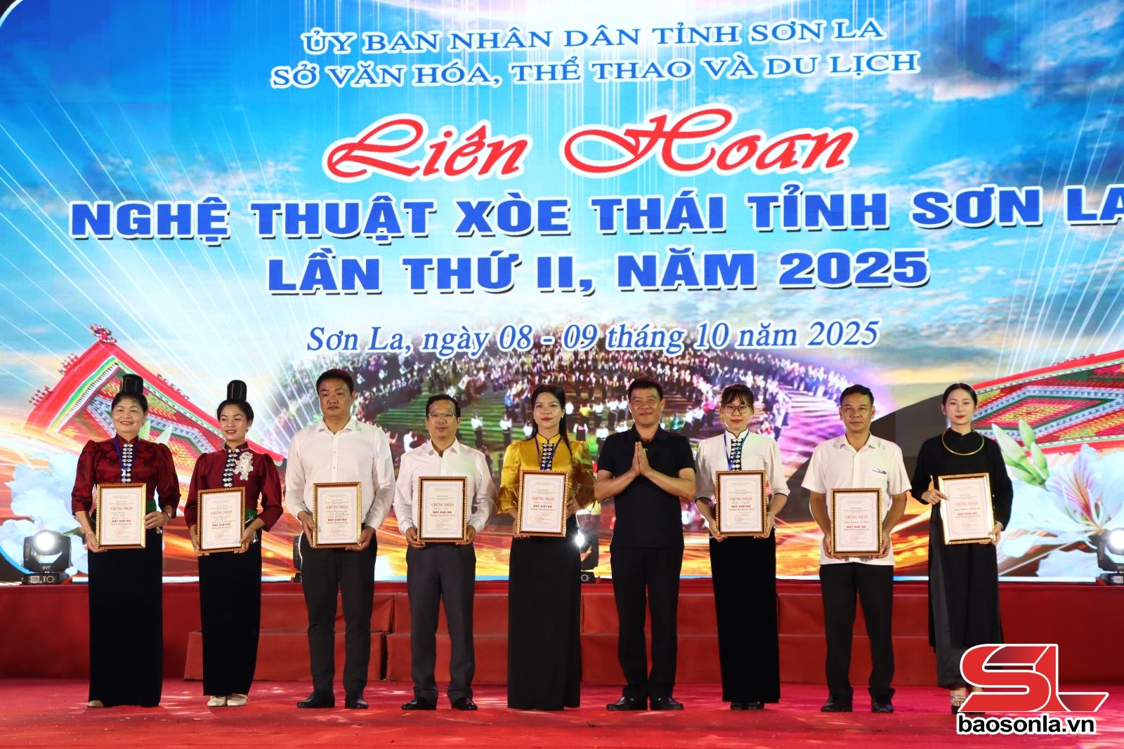 Sau 2 ngày (8 và 9/10) diễn ra Liên hoan, 13 đoàn nghệ thuật, với hơn 700 thành viên thuộc các xã, phường và câu lạc bộ trên địa bàn tỉnh đã tham gia 3 phần thi: Trình diễn 6 điệu xòe Thái cổ; trình diễn trang phục dân tộc Thái và biểu diễn múa Thái.