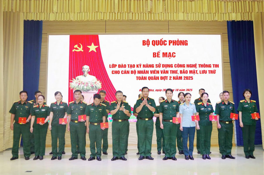 Lễ bế mạc Lớp đào tạo Chuẩn kỹ năng sử dụng CNTT cho cán bộ, nhân viên văn thư, bảo mật, lưu trữ toàn quân (đợt 2 năm 2025).