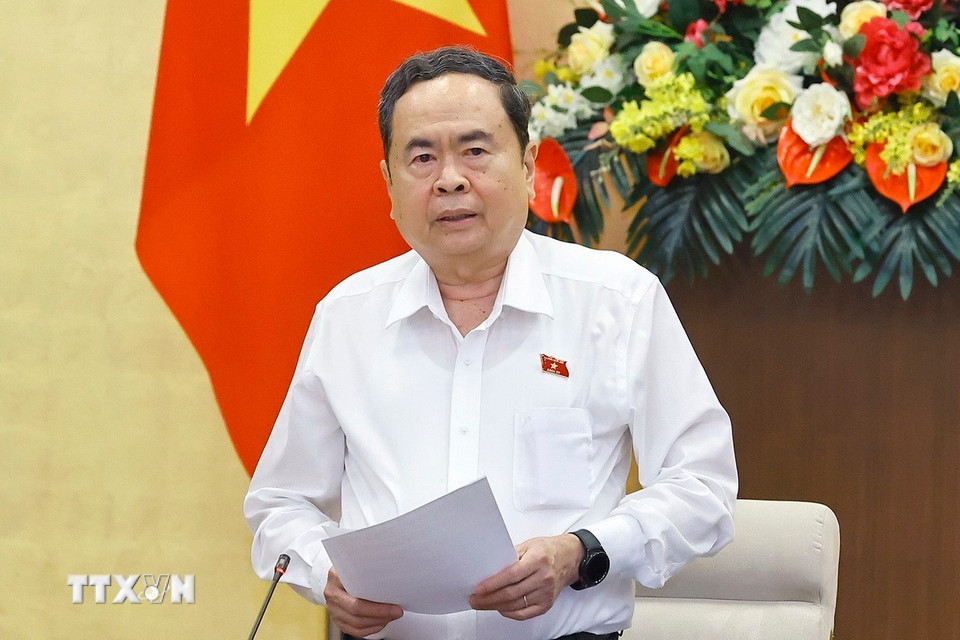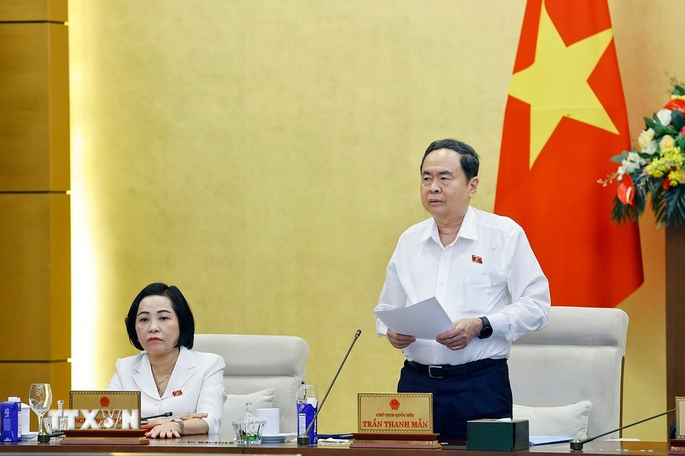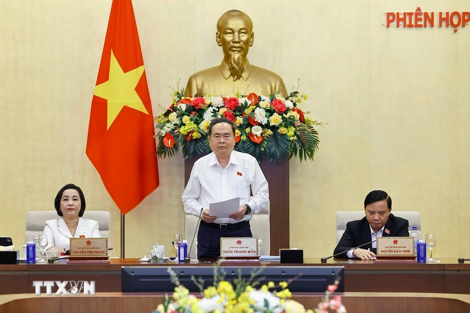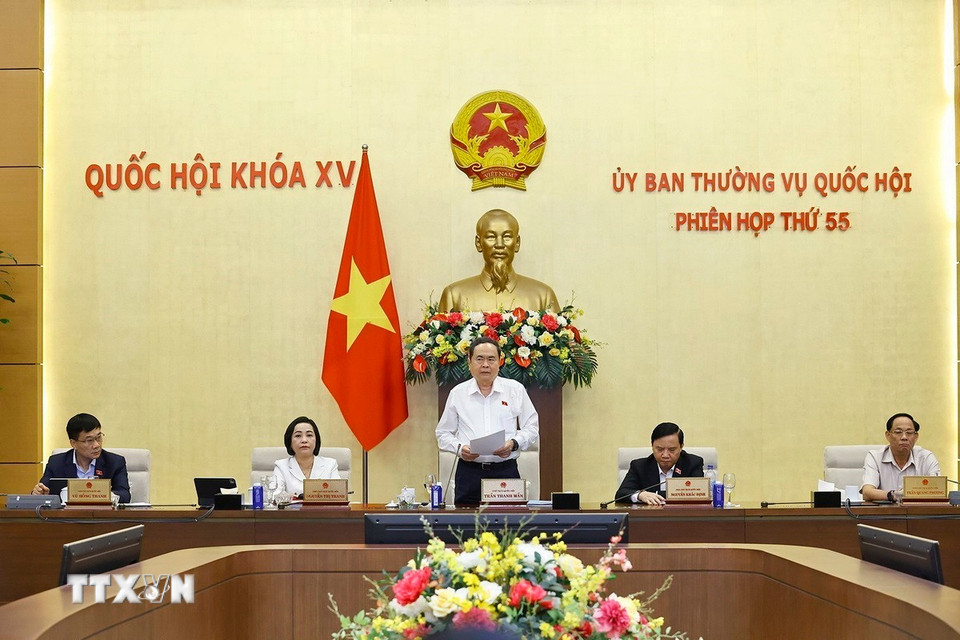Chủ tịch Quốc hội Trần Thanh Mẫn phát biểu bế mạc Phiên họp thứ 55 của Ủy ban Thường vụ Quốc hội. (Ảnh: Doãn Tấn/TTXVN)