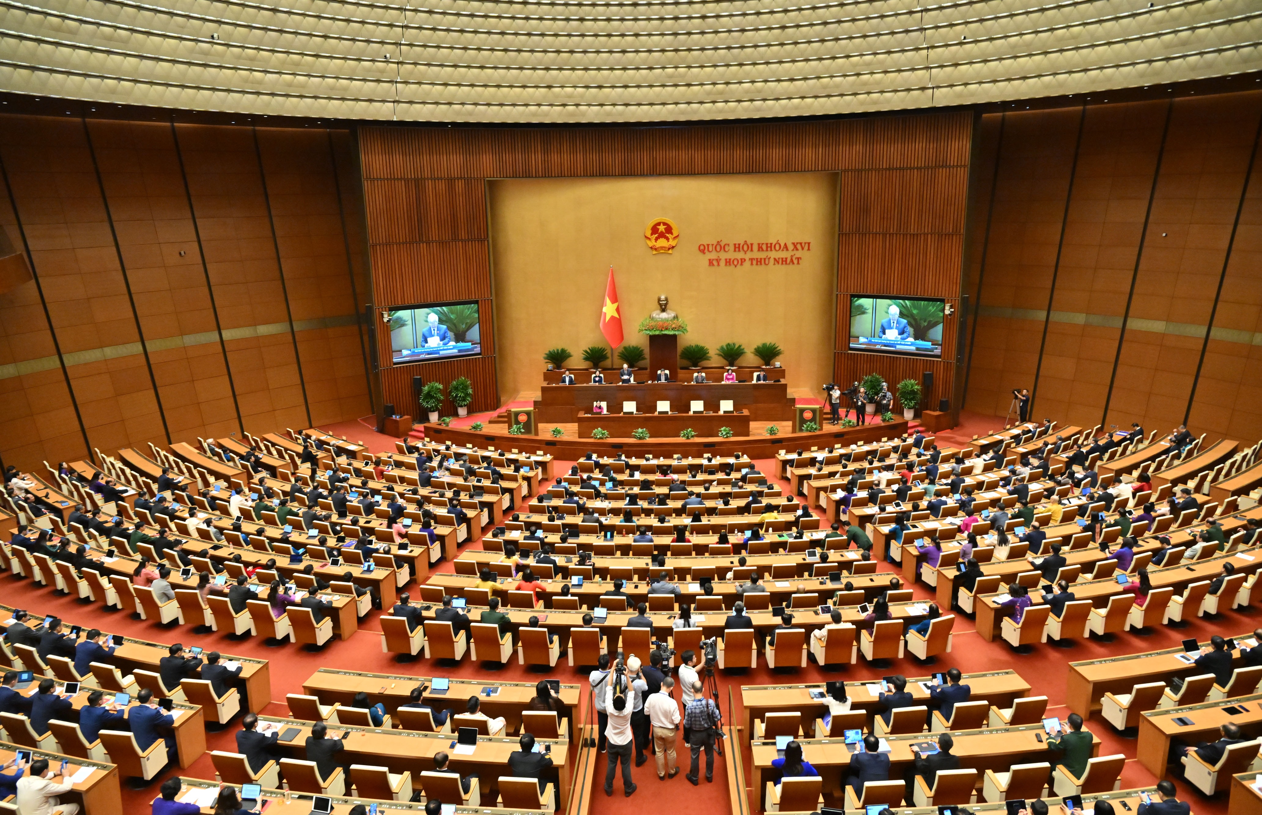 Các đại biểu Quốc hội bên hành lang Phiên bế mạc Kỳ họp thứ Nhất, Quốc hội khóa XVI. Ảnh: Chí Tuấn