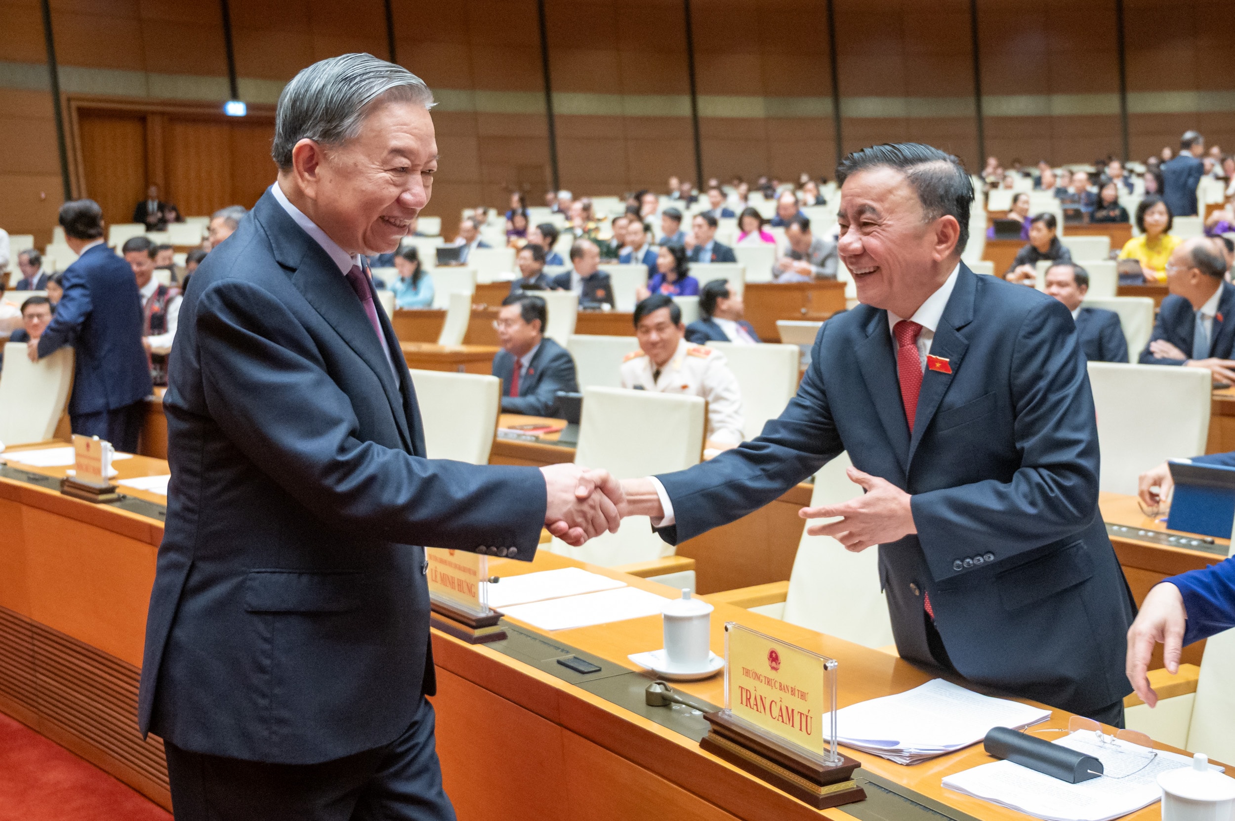 Tổng Bí thư, Chủ tịch nước Tô Lâm với Thường trực Ban Bí thư Trần Cẩm Tú tại phiên bế mạc. Ảnh: Phạm Thắng