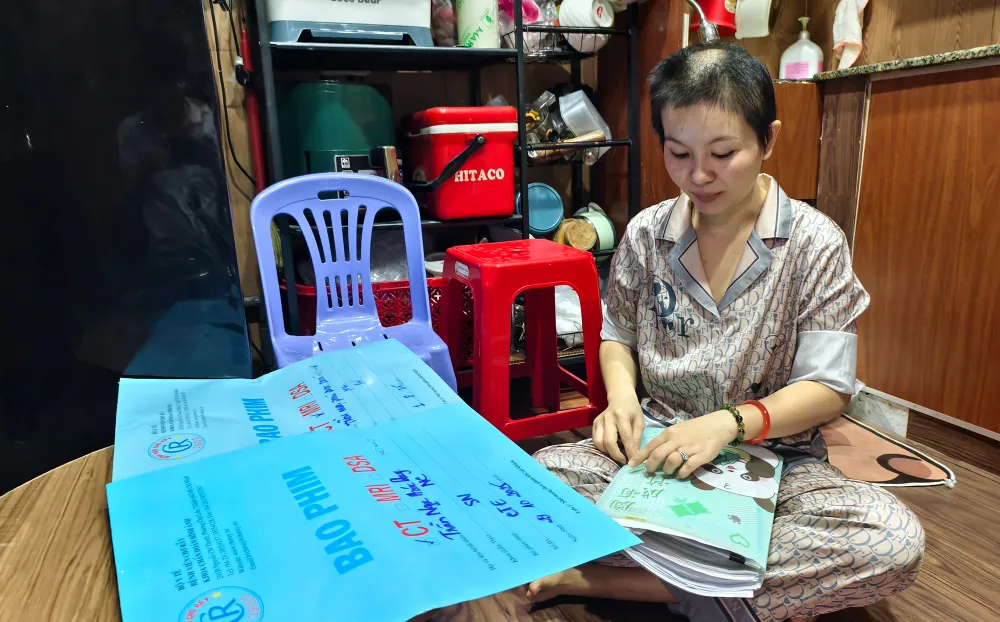 Trên gác nhỏ, em D nằm thiêm thiếp, chỉ có thể gọi mẹ yếu ớt. Theo chị Diễm, bé thường xuyên bị co giật, phải dùng thuốc an thần. Mỗi lần con lên cơn, chị lại xoa bóp tay chân, dỗ con ngủ. “Nghe con nói, ‘mẹ ơi sao tối đen như vậy’, nghe mà lòng tôi quặn thắt. Giờ con không nhìn thấy gì, cũng không tự chủ được việc đi vệ sinh” – chị bần thần.