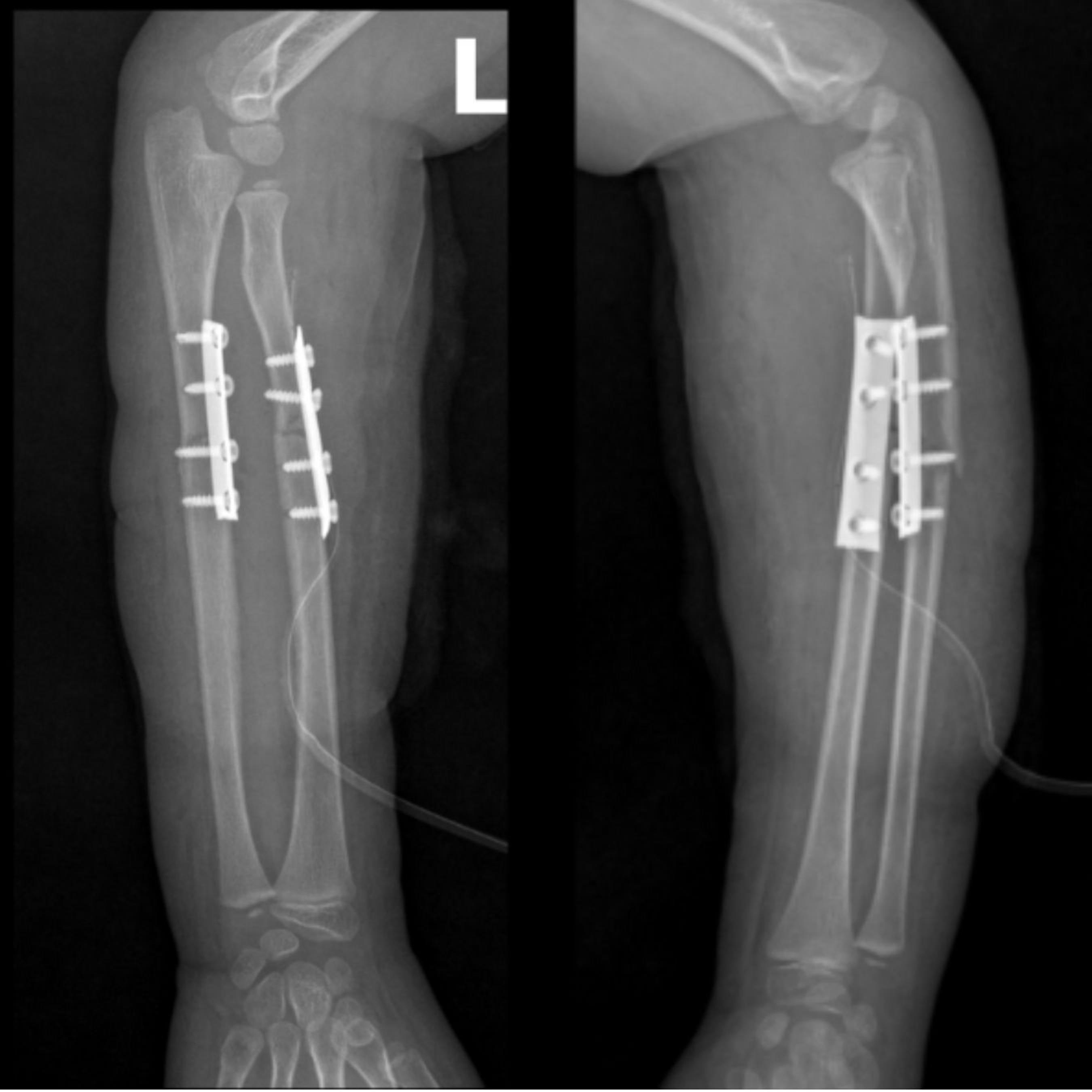 Tuy nhiên, vị trí gãy của bé nằm ở 1/3 trên hai xương cẳng tay, khó nắn chỉnh để đưa xương về đúng vị trí giải phẫu, nguy cơ xương liền lệch là rất cao. Bên cạnh đó, việc phải bất động tay suốt 4 - 6 tuần có thể gây hạn chế vận động, dẫn tới cứng khớp và khiến quá trình phục hồi chức năng sau này kéo dài, khó khăn hơn.