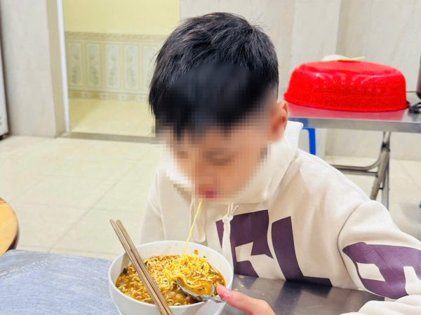Bữa tối đặc biệt của bé trai tại trụ sở Đội CSGT số 11.