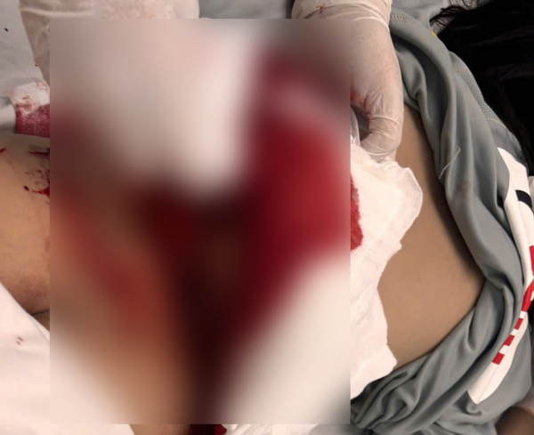 Bồn cầu bất ngờ bị vỡ khiến các mảnh sứ sắc cắt sâu vào vùng lưng bệnh nhi, gây vết thương hở lớn và chảy máu nhiều