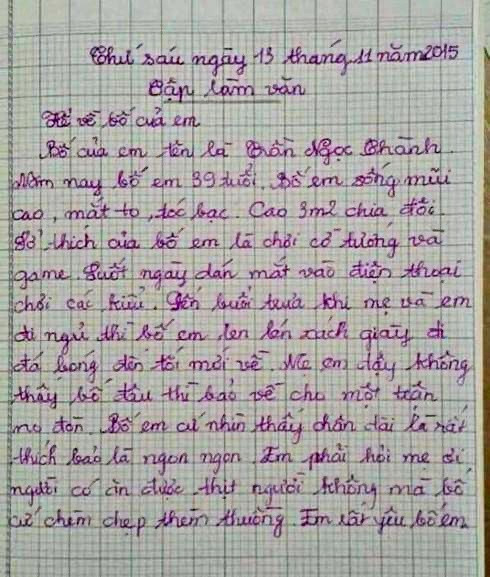 Bài văn tả về bố khiến dân mạng cười ngất.