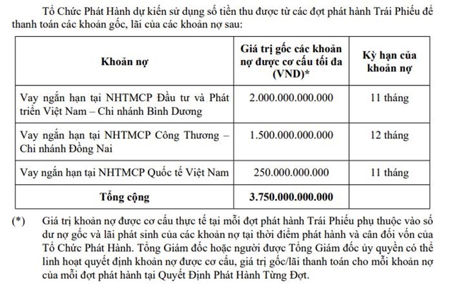 Becamex Group dự kiến sử dụng số tiền thu được từ các đợt phát hành trái phiếu để thanh toán các khoản gốc, lãi của các khoản nợ ngân hàng.