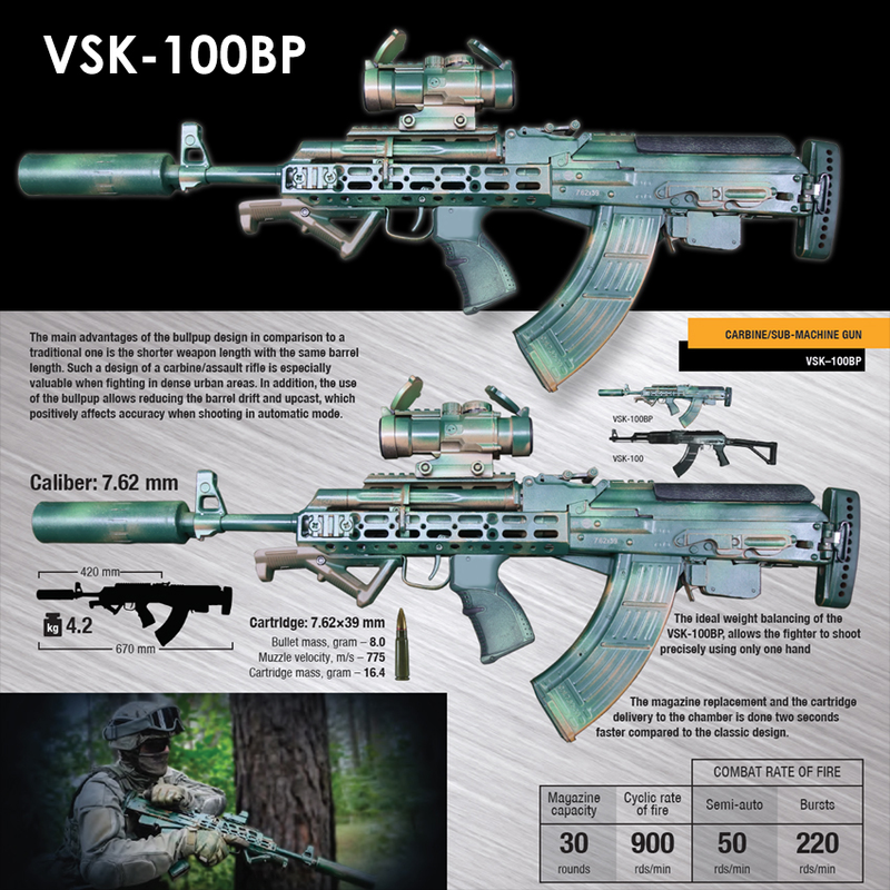 Đáng chú ý, nhà sản xuất cũng phát triển biến thể VSK-100-223 sử dụng đạn 5.56 x 45 mm chuẩn NATO. Một trong những thông số ấn tượng nhất của dòng súng này là tuổi thọ nòng súng được đảm bảo ở mức 20.000 viên đạn, cho phép hoạt động bền bỉ trong các điều kiện tác chiến cường độ cao.