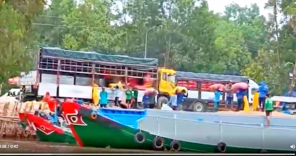 Trao đổi với phóng viên vào chiều ngày 2/12, ông Trần Thiện Nhàn - Phó Trưởng phòng Kinh tế xã Giang Thành cho biết, trong lần tái kiểm tra tại bến bãi trái phép này vào chiều 01/12/2025, đoàn kiểm tra phát hiện bến bãi này vẫn đang bốc dỡ hàng hóa. Tại khu bến bãi có một xe tải biển kiểm soát 68A-409.05 và phương tiện ghe chở lúa mang biển kiểm soát AG-24753.