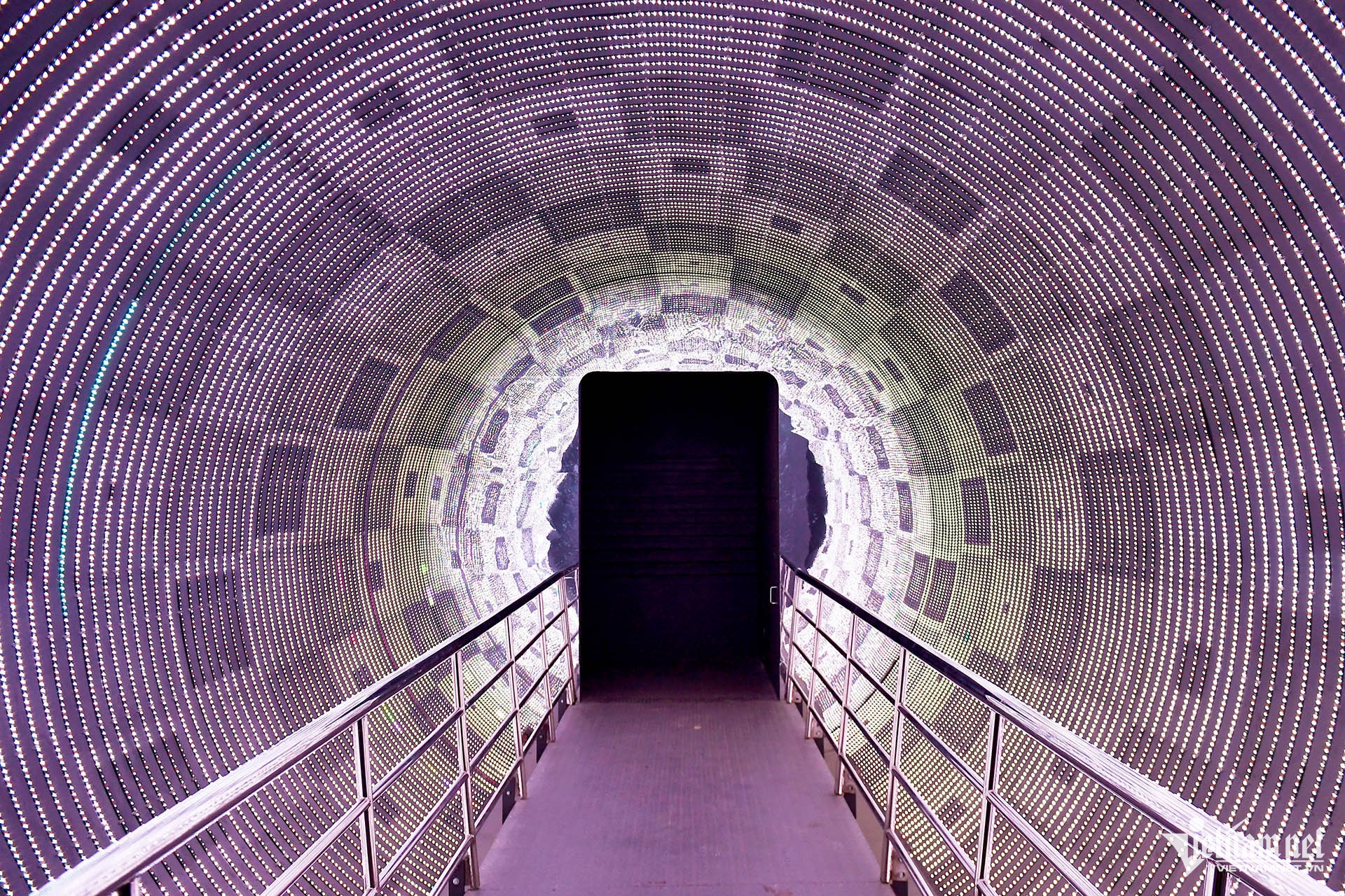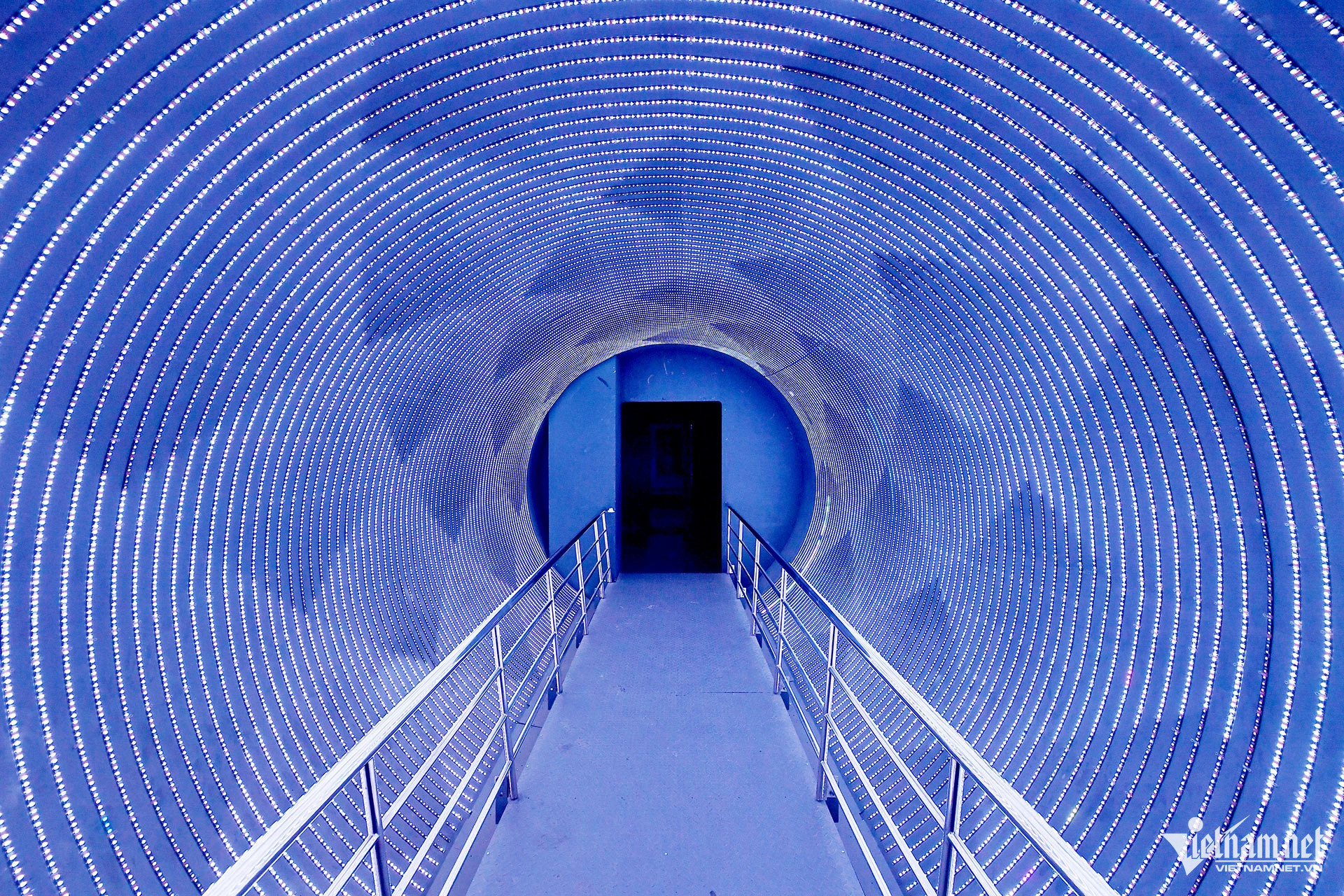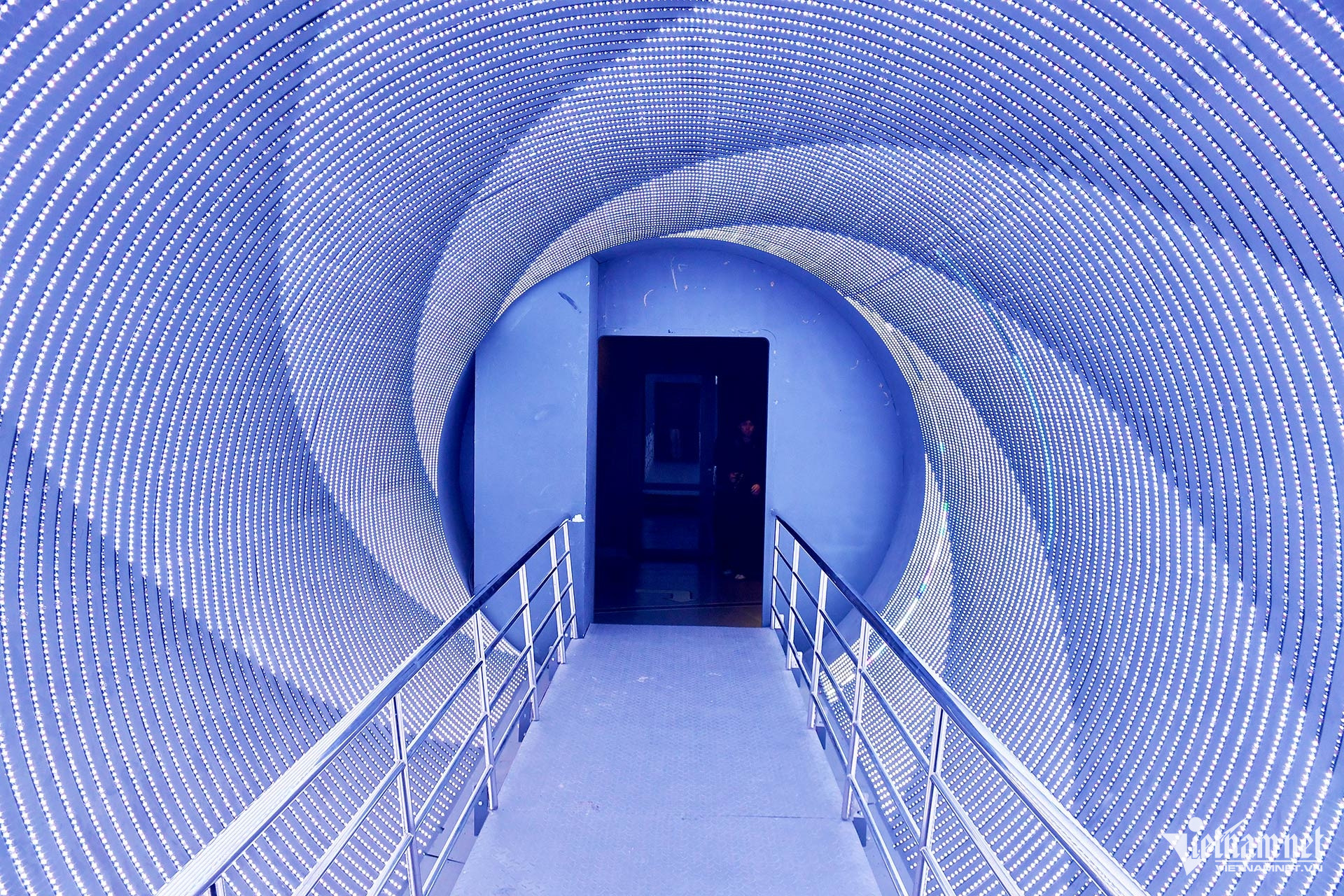 Đường hầm ánh sáng huyền ảo, được kiến tạo như một hành lang vô cực, kết nối liền mạch hai khu trưng bày khoa học cơ bản và khoa học vũ trụ.