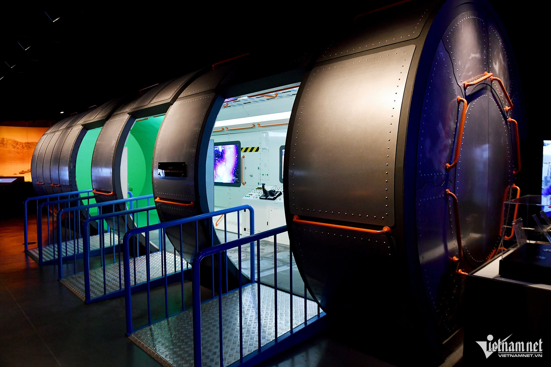Mô hình buồng thí nghiệm/khoang mô phỏng môi trường vũ trụ trong bảo tàng, để giải thích cách con người nghiên cứu không gian trong điều kiện khắc nghiệt.