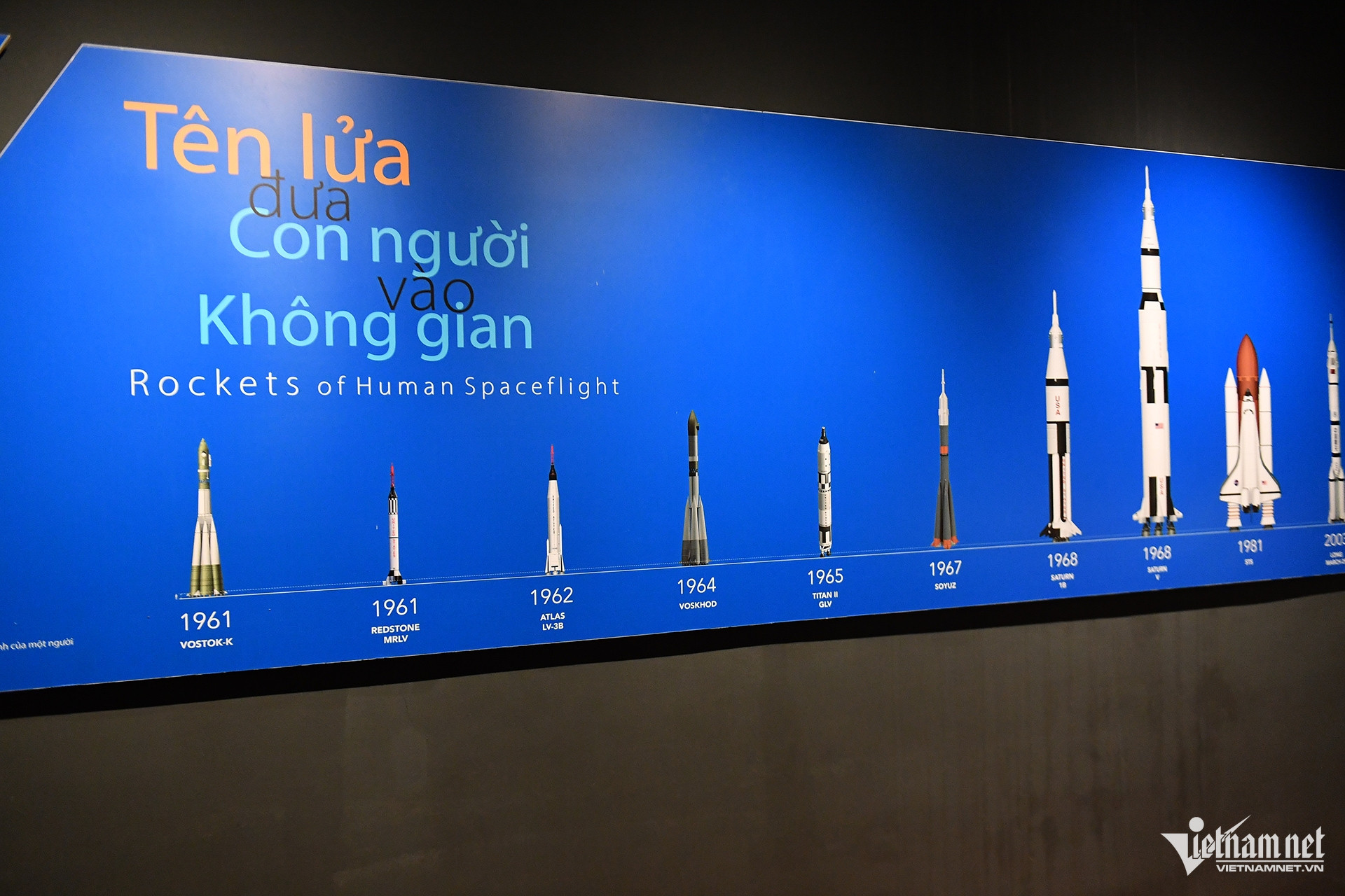 Khu trưng bày các tên lửa và phương tiện đưa con người vào không gian với mô hình thu nhỏ những tên lửa, tàu vũ trụ có người lái tiêu biểu trong lịch sử chinh phục không gian của nhân loại.