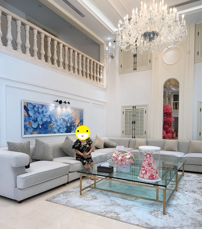 Cơ ngơi gồm 5 tầng, có tông màu trắng chủ đạo với nội thất sang trọng. Ước tính, căn biệt thự có giá trị hơn 200 tỷ đồng. Ảnh: FBNV