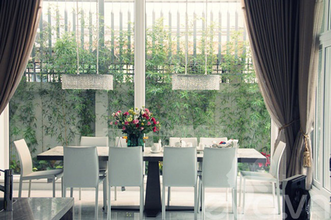 Không gian trong căn biệt thự trông thoáng đãng và gần gũi với thiên nhiên.