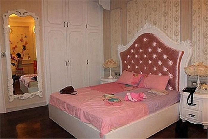 Phòng ngủ được thiết kế với tone trắng - hồng dành riêng cho con gái Trương Ngọc Ánh.