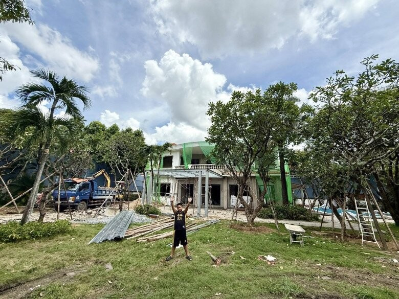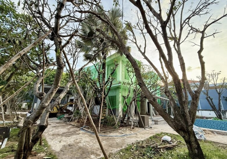 Một góc trong khuôn viên biệt thự đang trong quá trình cải tạo, phủ đầy cây xanh. Ảnh: FB Do Manh Cuong