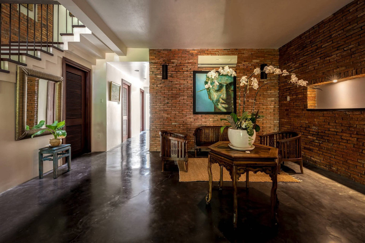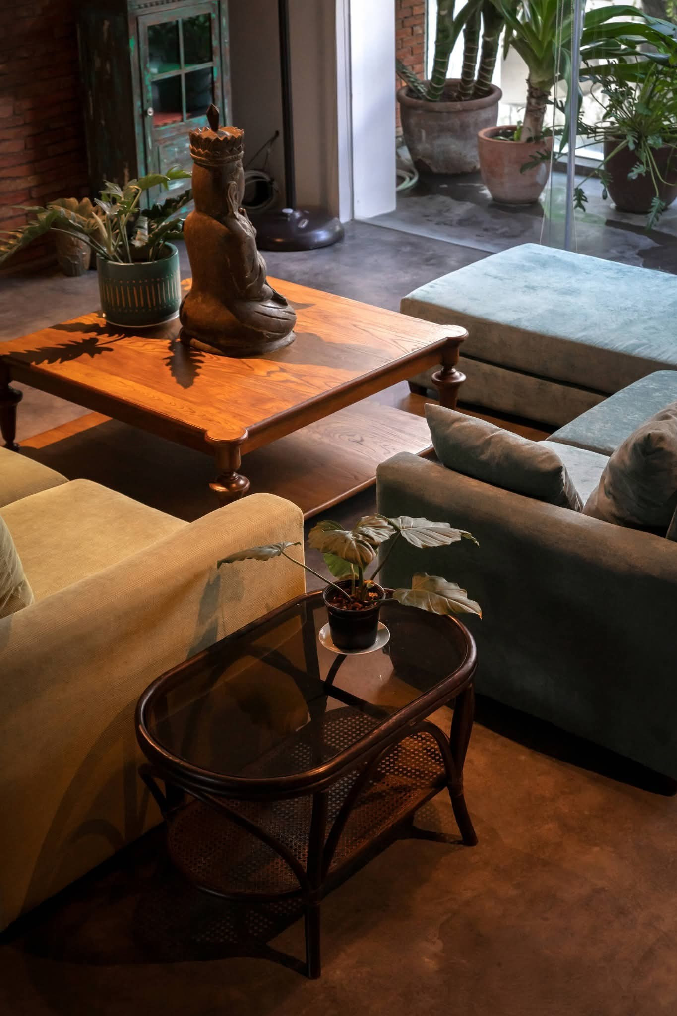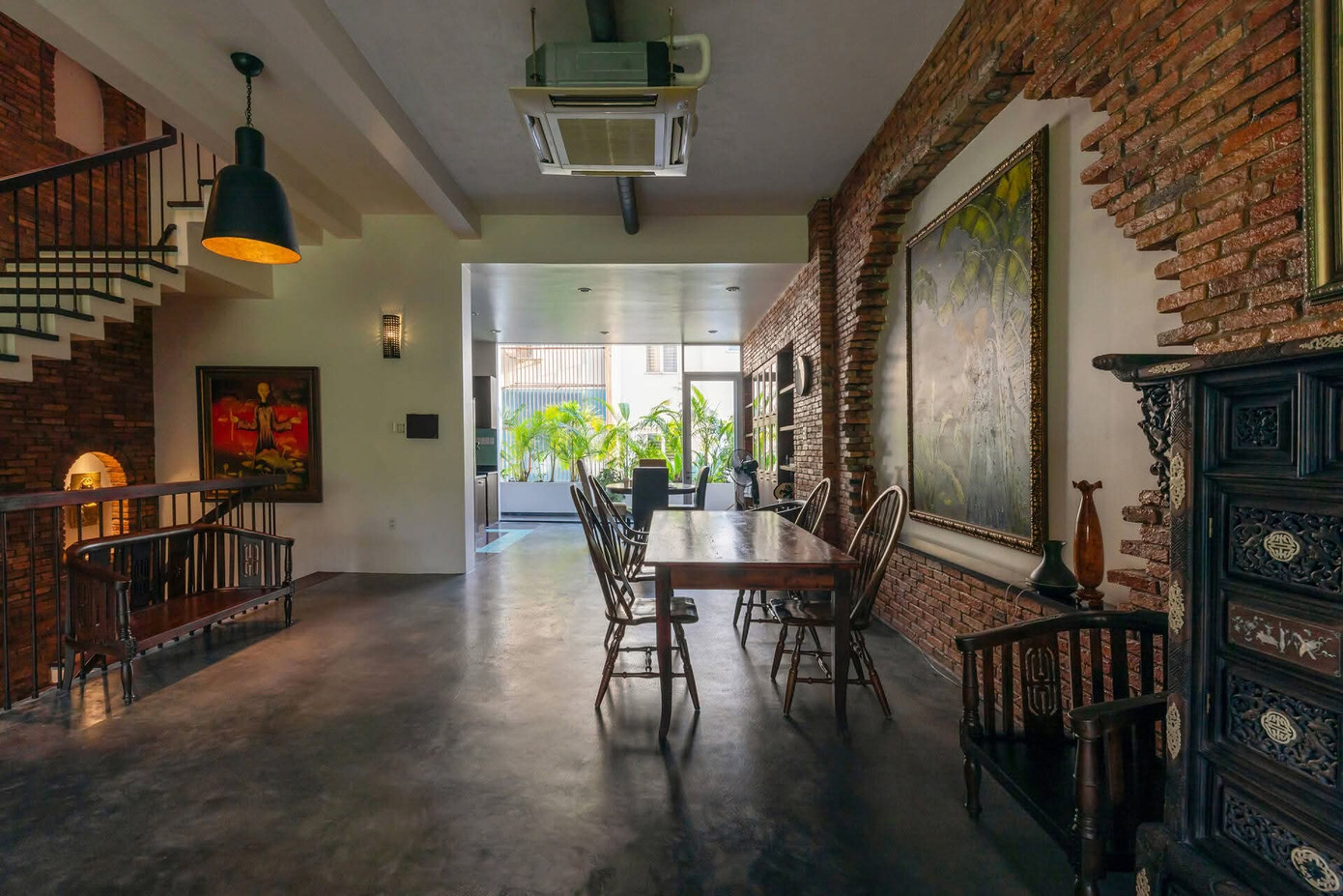 Những vật liệu cũ được lựa chọn cẩn trọng hòa quyện với ánh sáng tự nhiên, tạo nên “màu thời gian” ấm áp trong nội thất, khiến bất cứ ai bước vào cũng cảm nhận được sự thân thuộc và yên bình. Khoảng sân xanh trước và sau nhà như những hơi thở mát lành, mời gọi nắng và gió lùa khắp không gian sống.