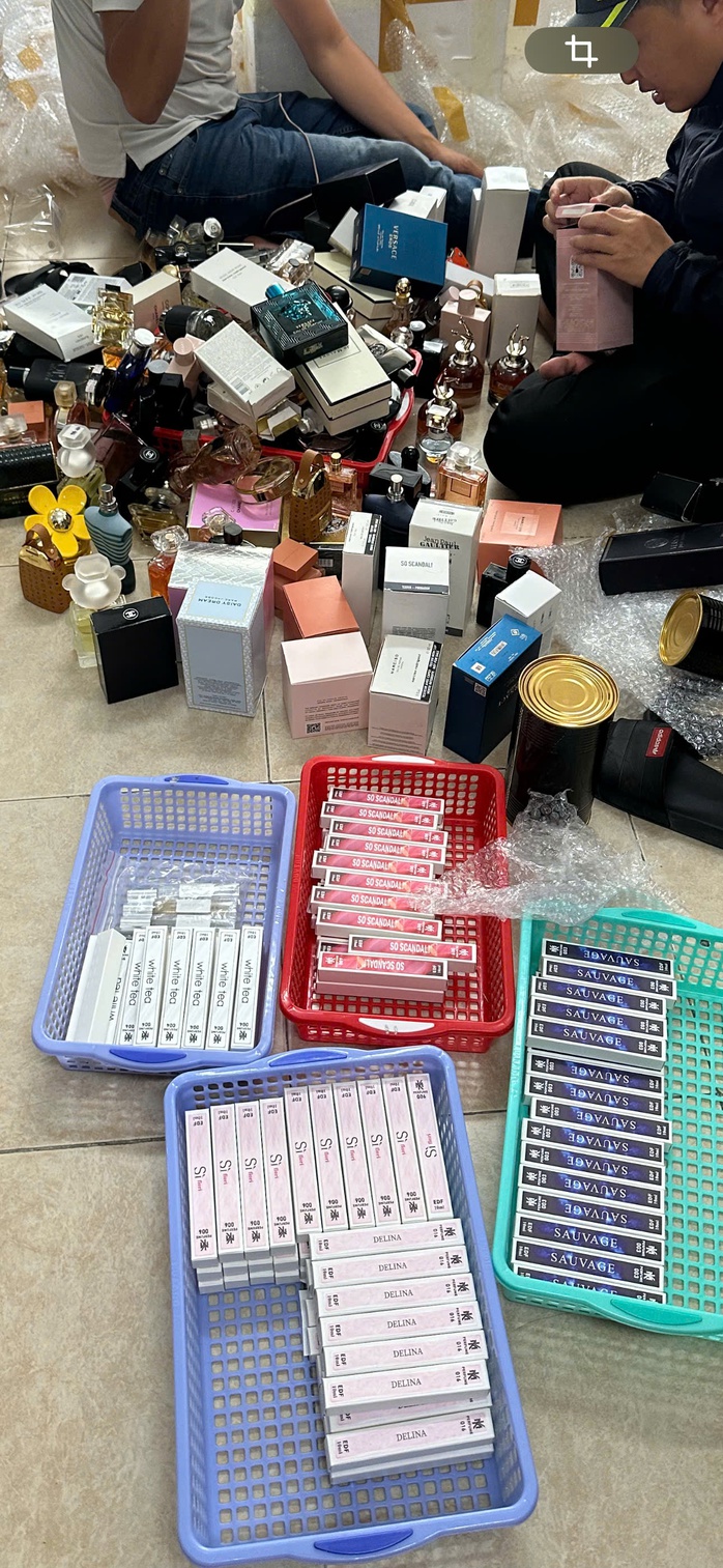 Đầu năm 2024, vợ chồng ông Thơ đã mày mò công thức chế biến nước hoa rồi mua dây chuyền sản xuất, nguyên liệu, hương liệu để làm giả nước hoa thương hiệu nổi tiếng trên thế giới.