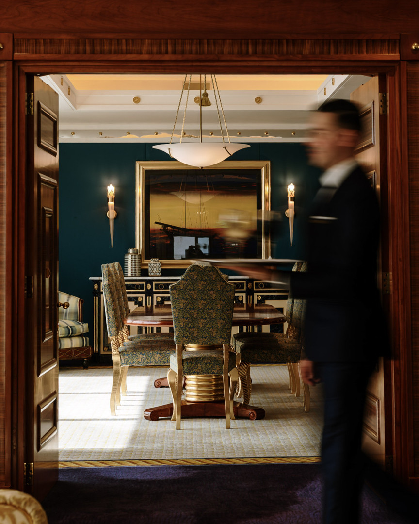 Dịch vụ cao cấp khác gồm quản gia riêng, quầy bar phục vụ các loại đồ uống theo sở thích của khách, các loại gối để khách có thể lựa chọn cho giấc ngủ êm ái. Hai phòng tắm chính được trang bị bồn tắm tạo sóng cỡ lớn, bao quanh bởi các cột đá cẩm thạch vàng kiểu La Mã.