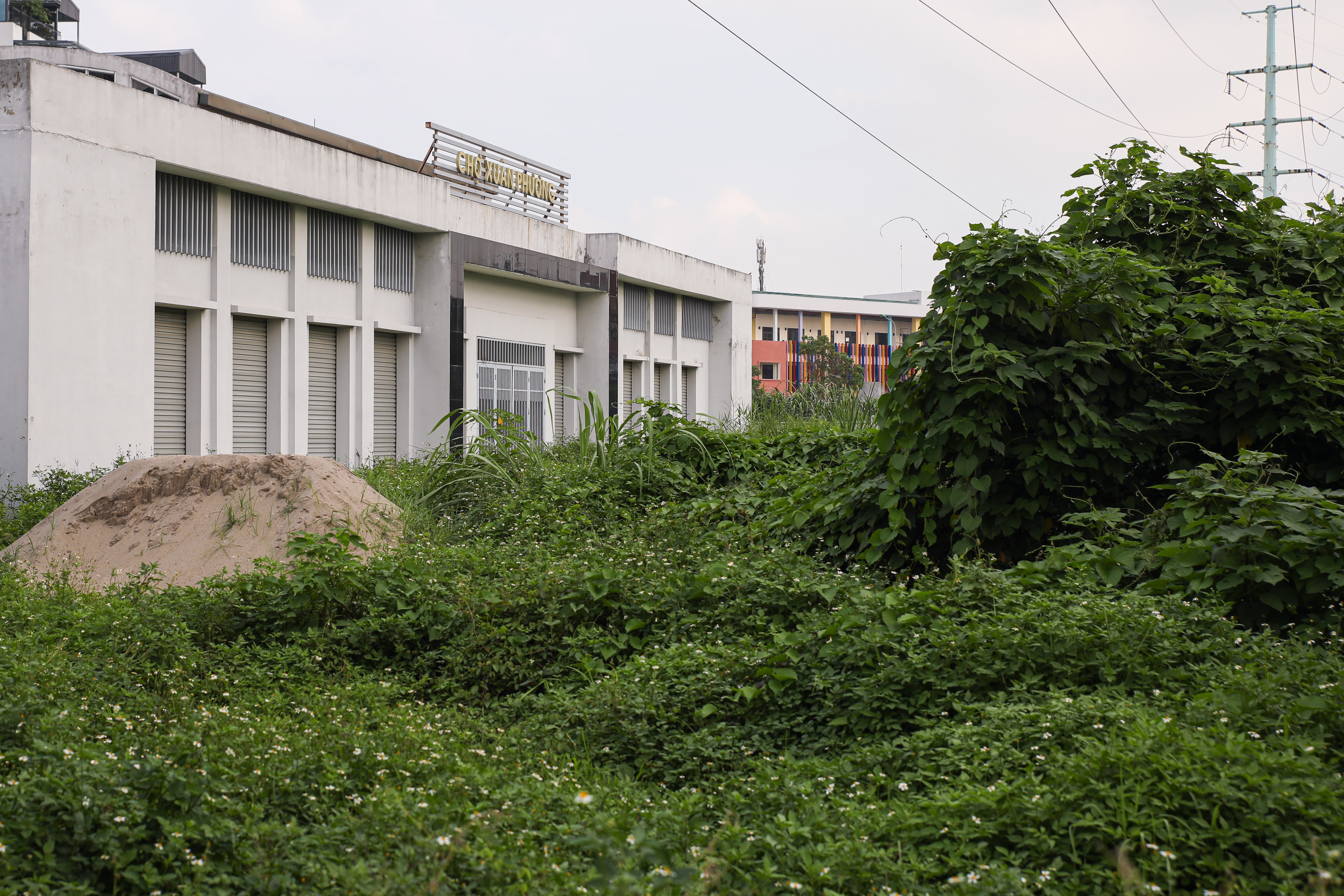 Ghi nhận tại chợ Xuân Phương (quận Nam Từ Liêm, Hà Nội) bị bỏ hoang gần 10 năm nay, có nhiều hạng mục đang xuống cấp dù xây dựng dở dang, cỏ mọc um tùm khắp khuôn viên chợ.